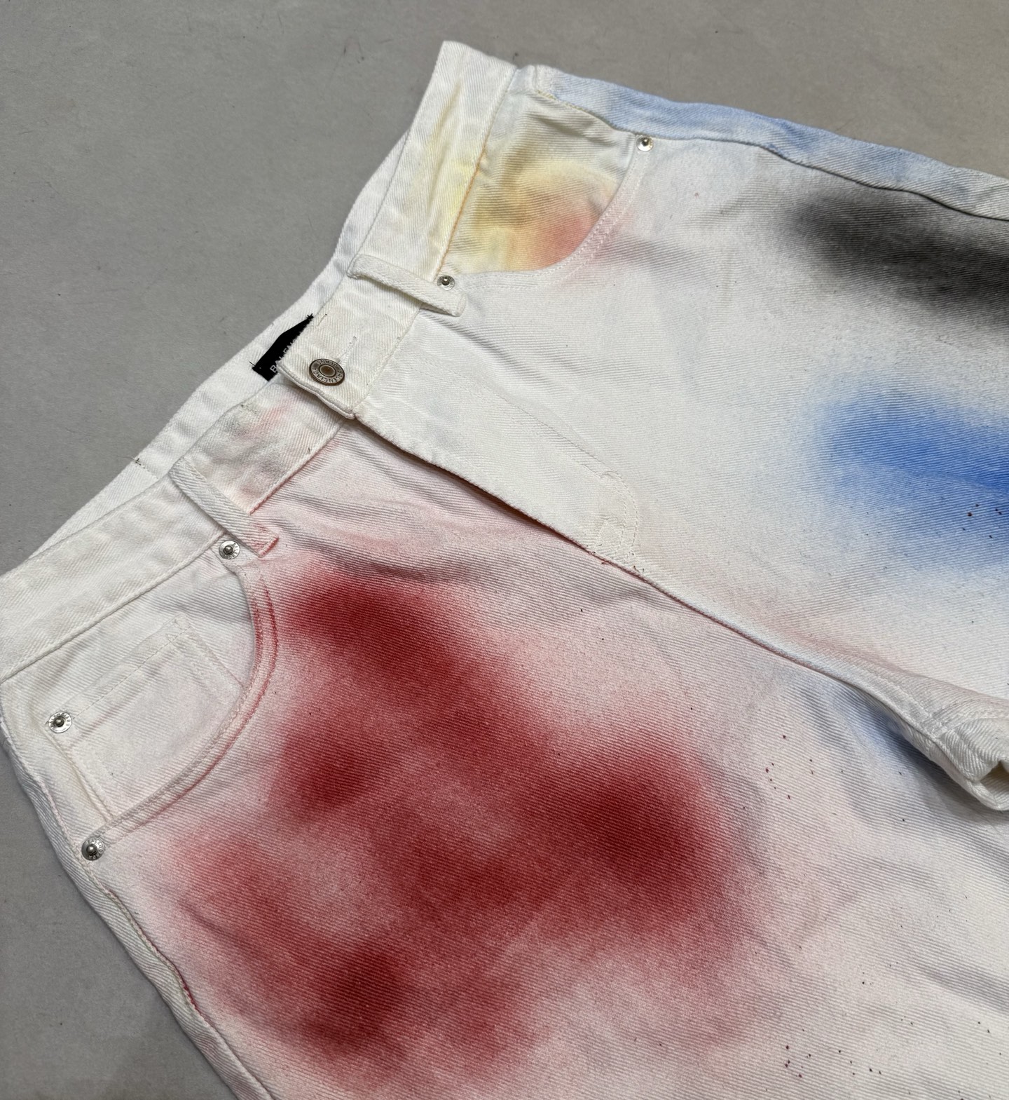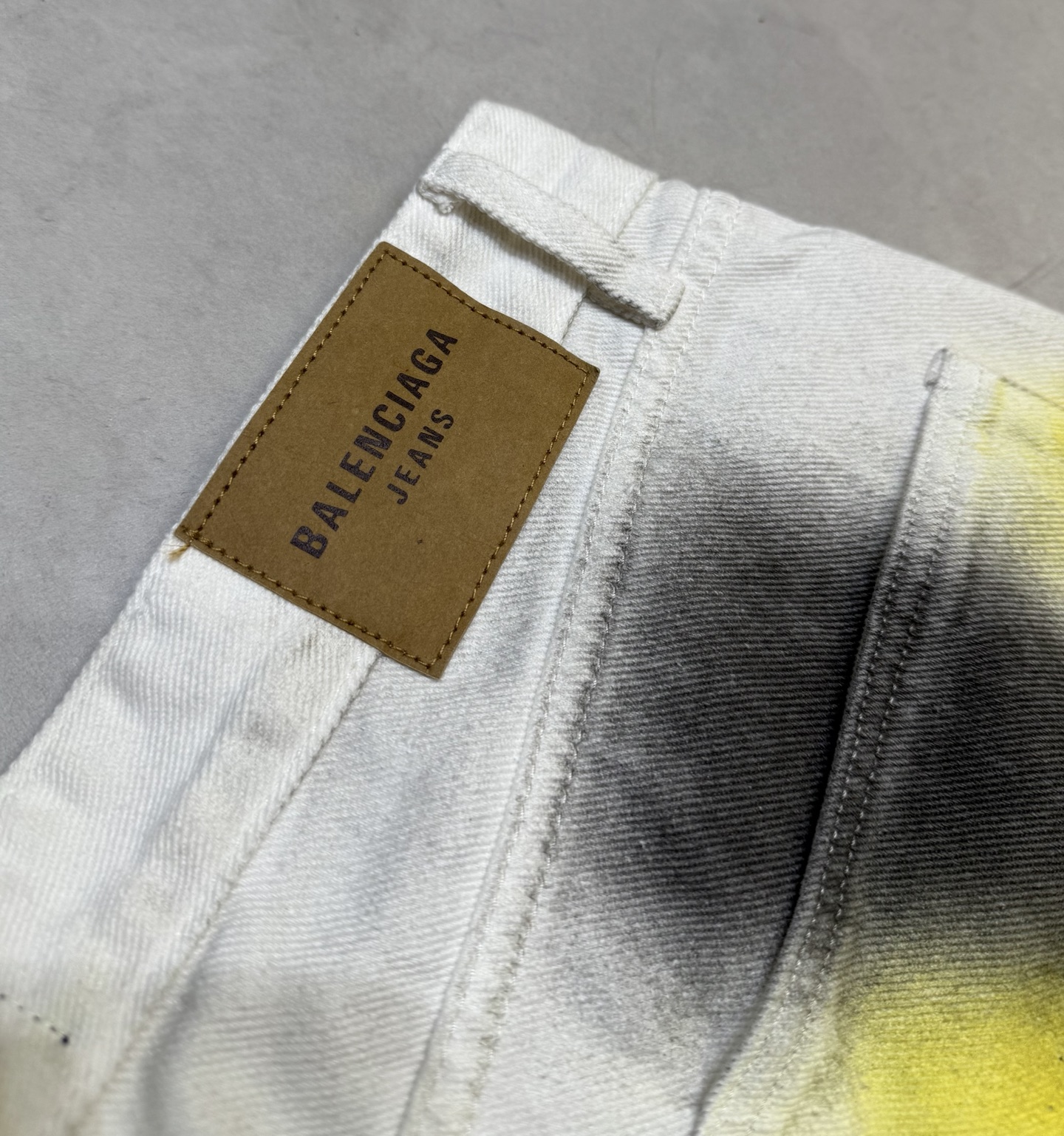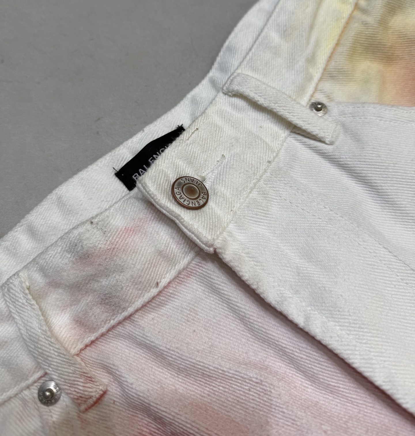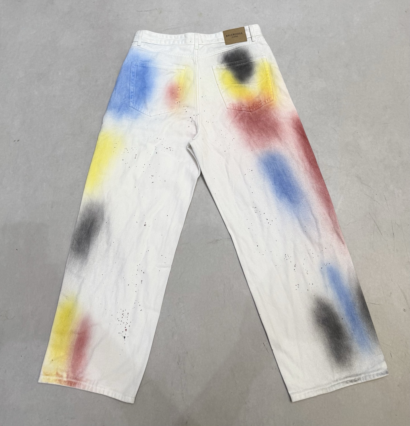 Tags: Balenciaga Spijkerbroek, Unisex Spijkerbroek, Verfspatten Broek, Wijde Pijpen Broek, Witte Denim