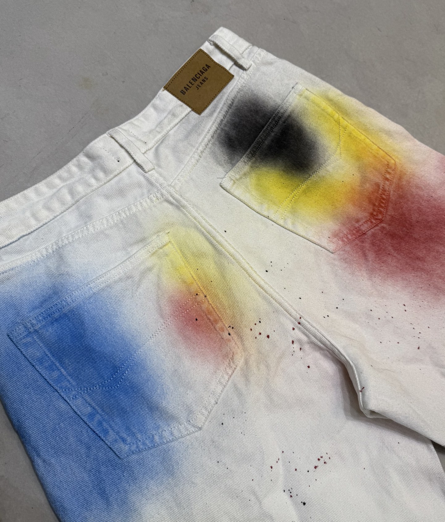 Ik was een beetje sceptisch over de verfspatten, maar in het echt ziet de broek er super cool uit. De kwaliteit is ook top, zoals je van Balenciaga mag verwachten.