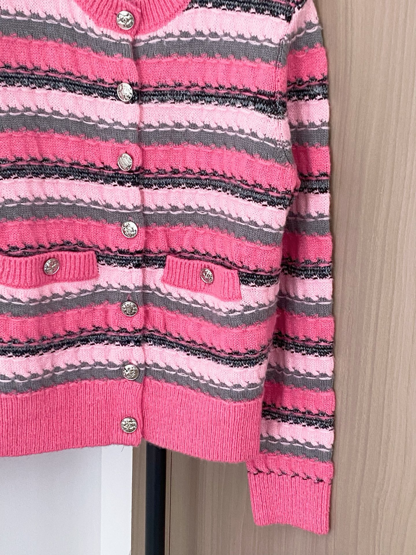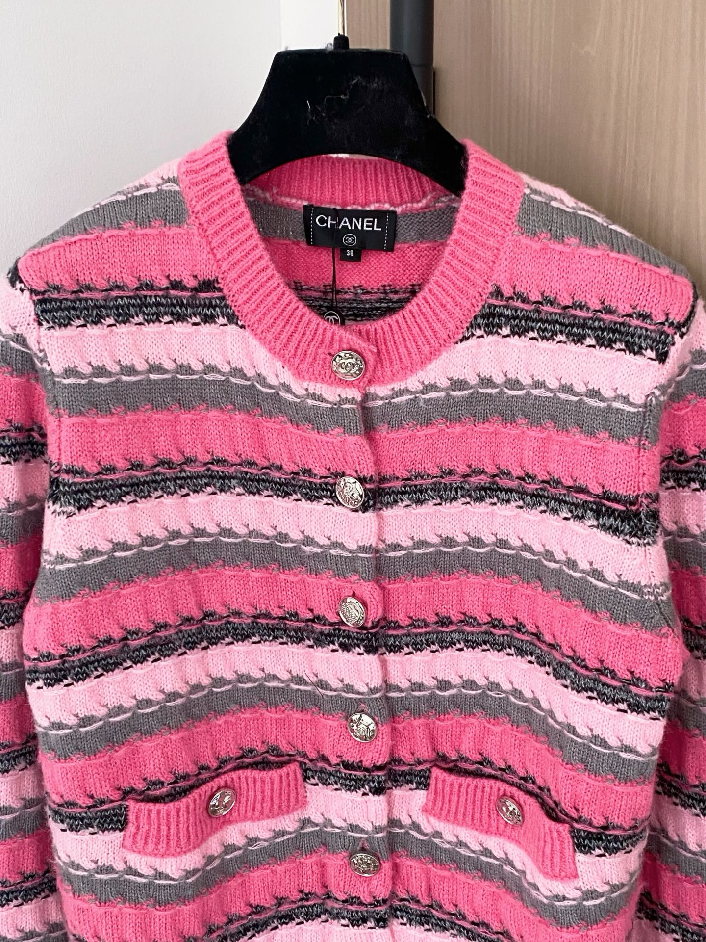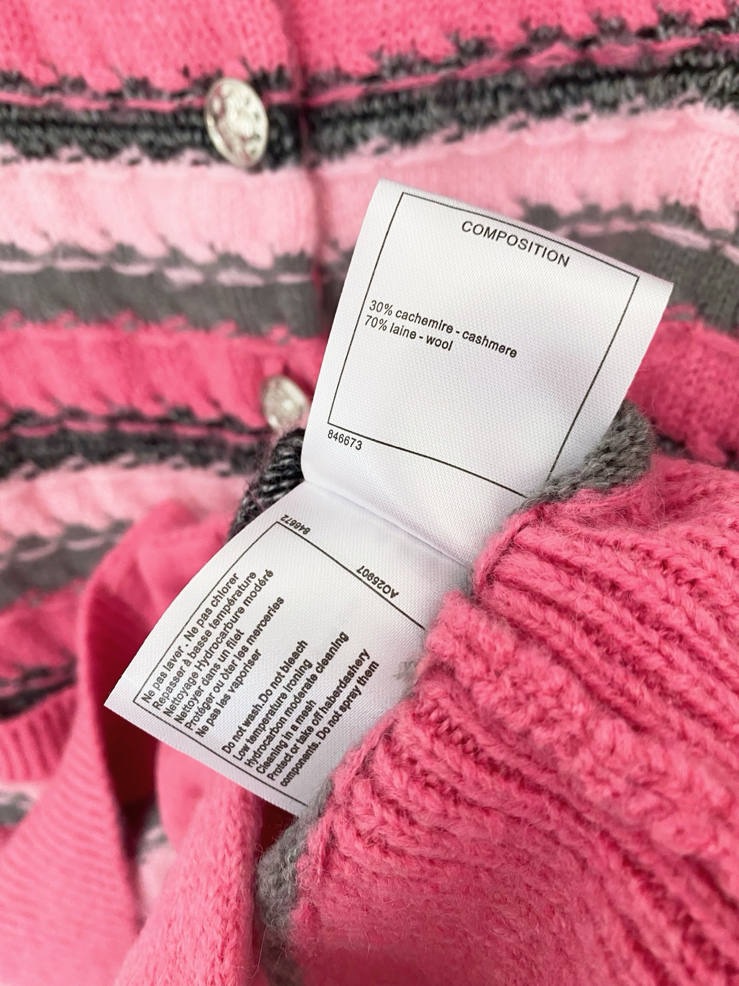 Chanel Gebreid Vest in Roze en Grijs met Logo Knopen - Nieuwe Collectie