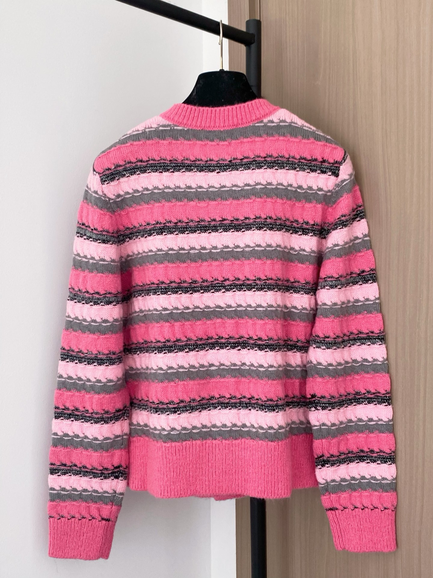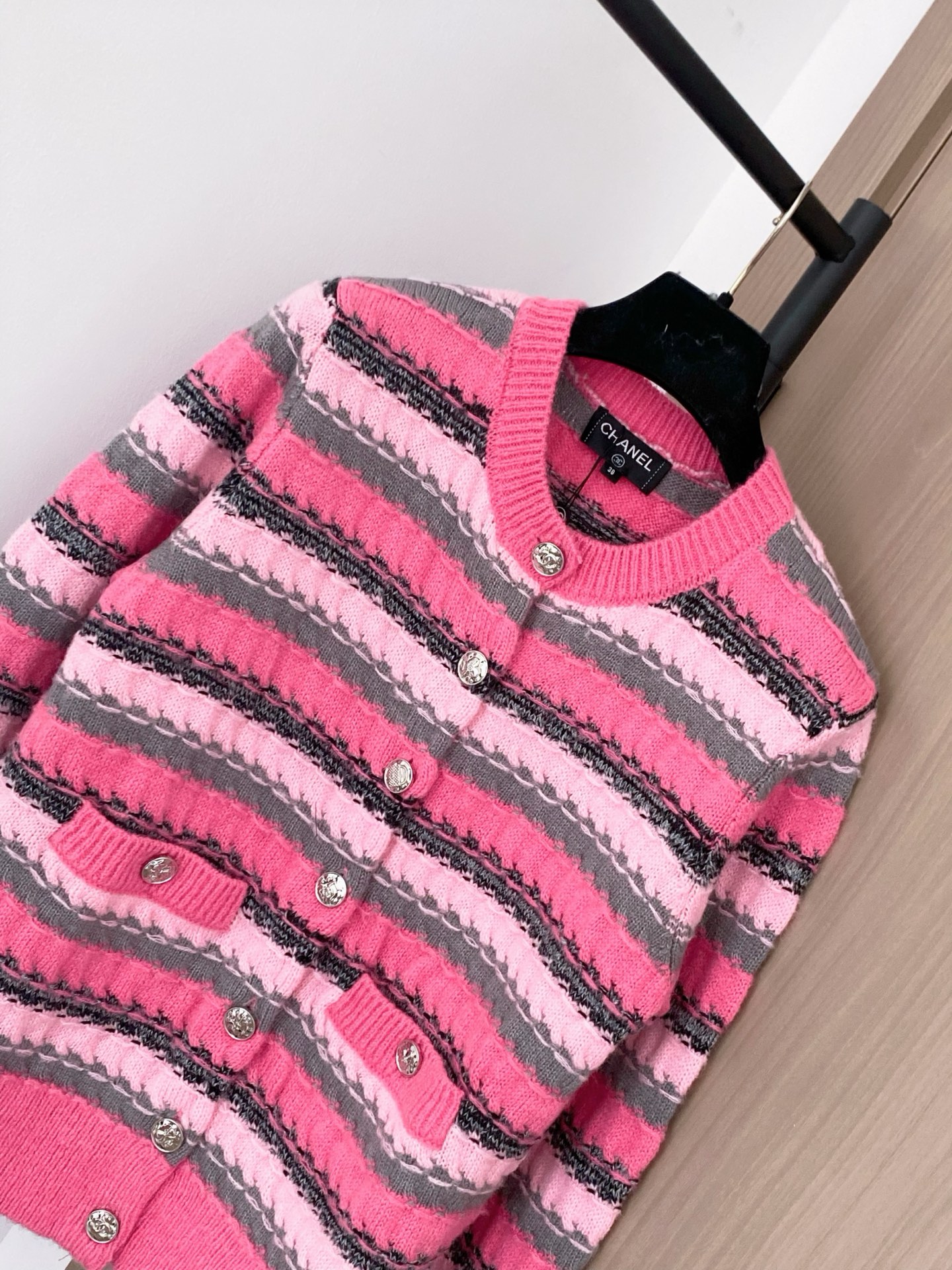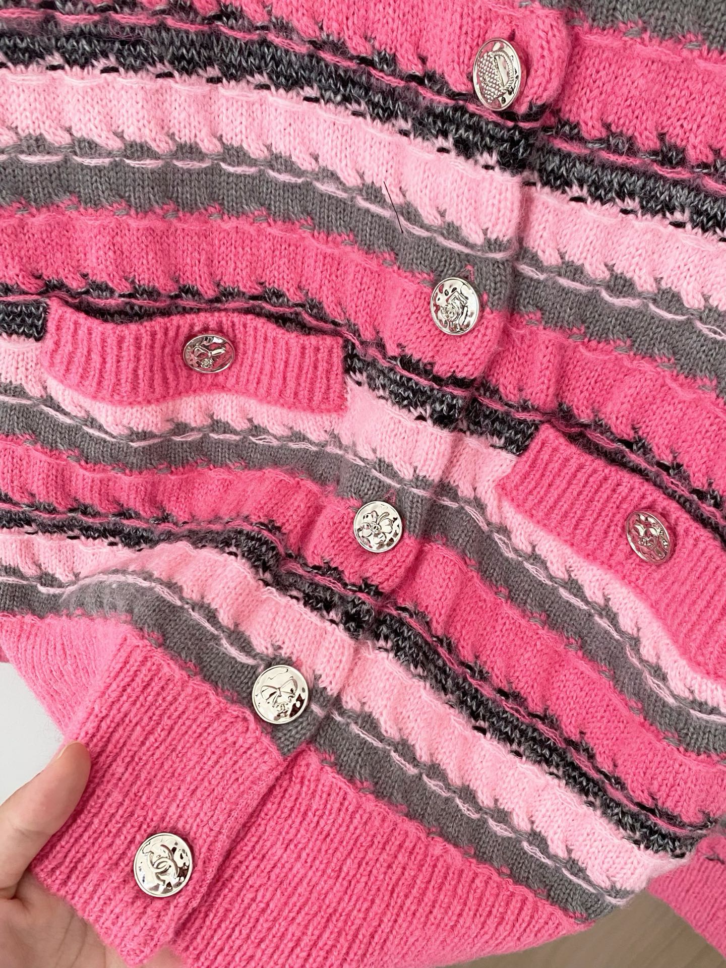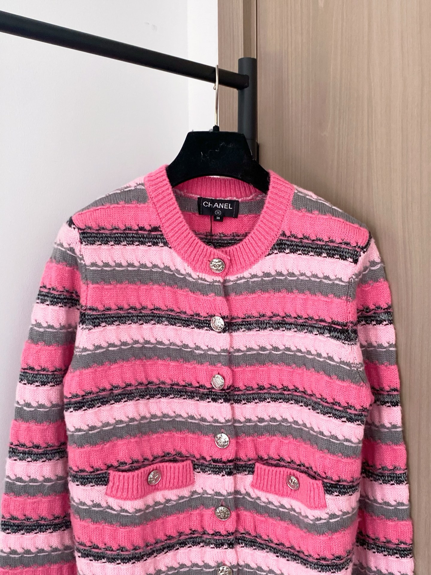 Chanel Gebreid Vest in Roze en Grijs met Logo Knopen - Nieuwe Collectie