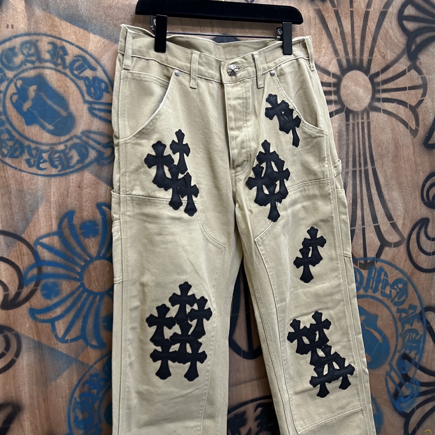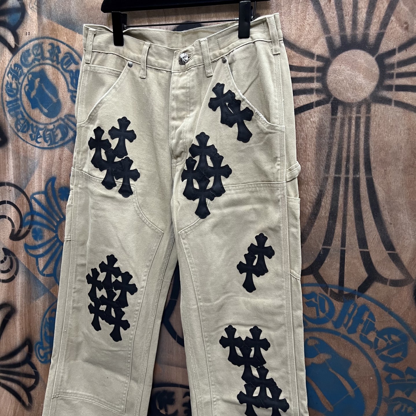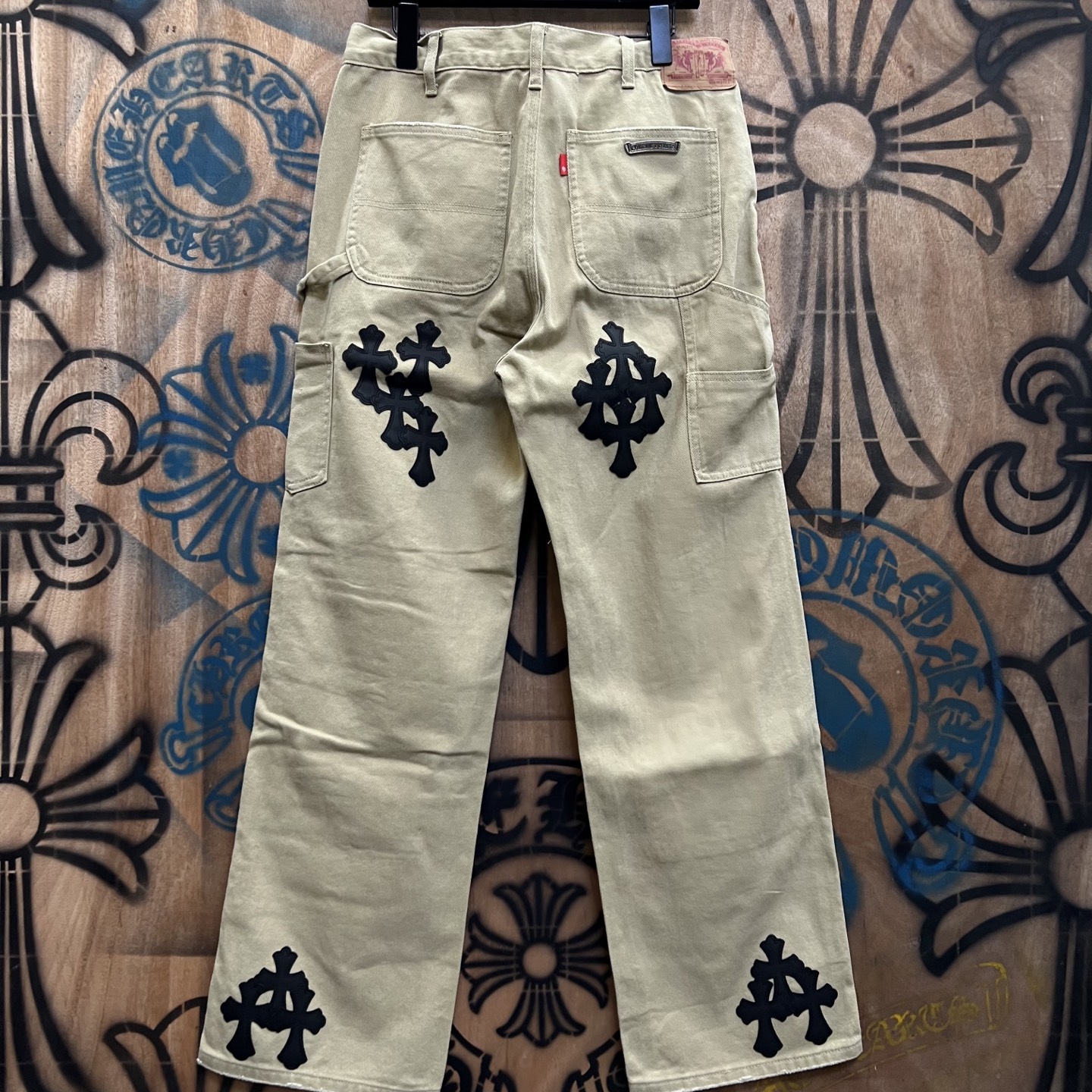 Exclusieve Chrome Hearts jeans, gemaakt van vintage Levi's met unieke 925 zilveren kruisdetails. Een stijlvolle en opvallende toevoeging aan je garderobe.