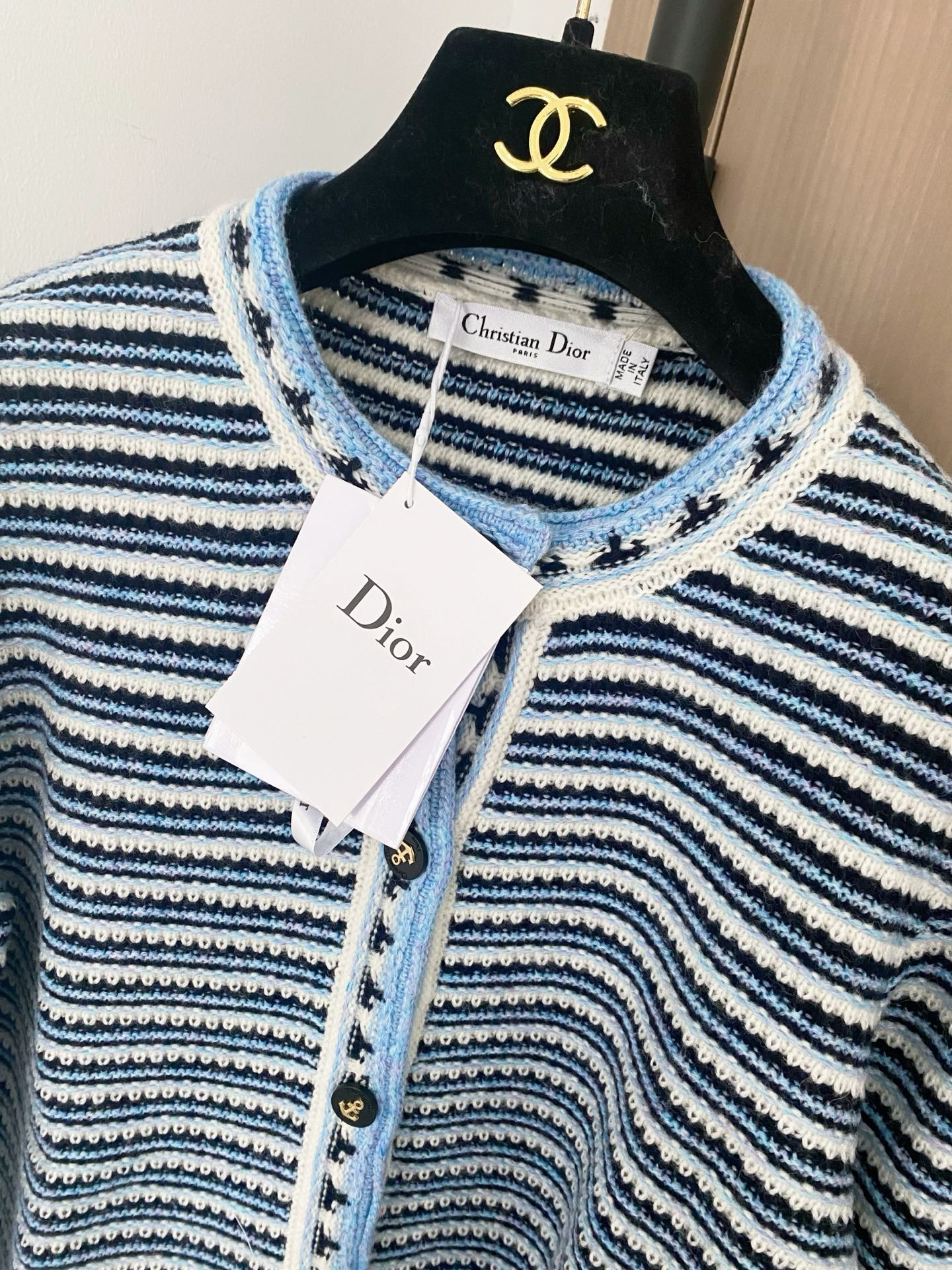 Dit prachtige Dior vest combineert comfort met een tijdloze stijl. Het gestreepte patroon en de hoogwaardige materialen maken het een must-have voor elke garderobe.