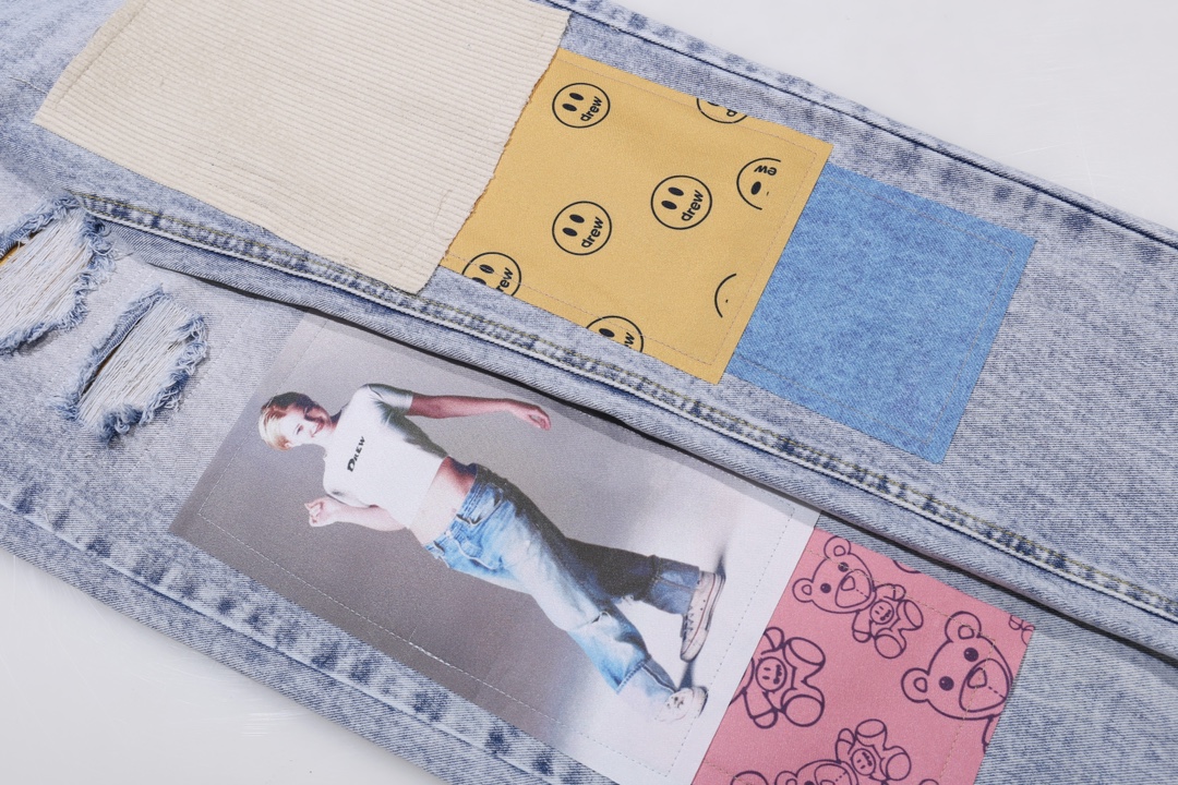 Tags: Casual Denim, Drew House Jeans, Heren Jeans, Patchwork Denim, Smiley Patch Jeans, Straight Leg Jeans