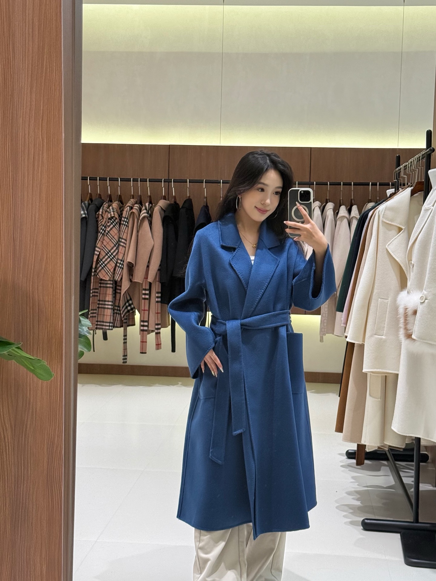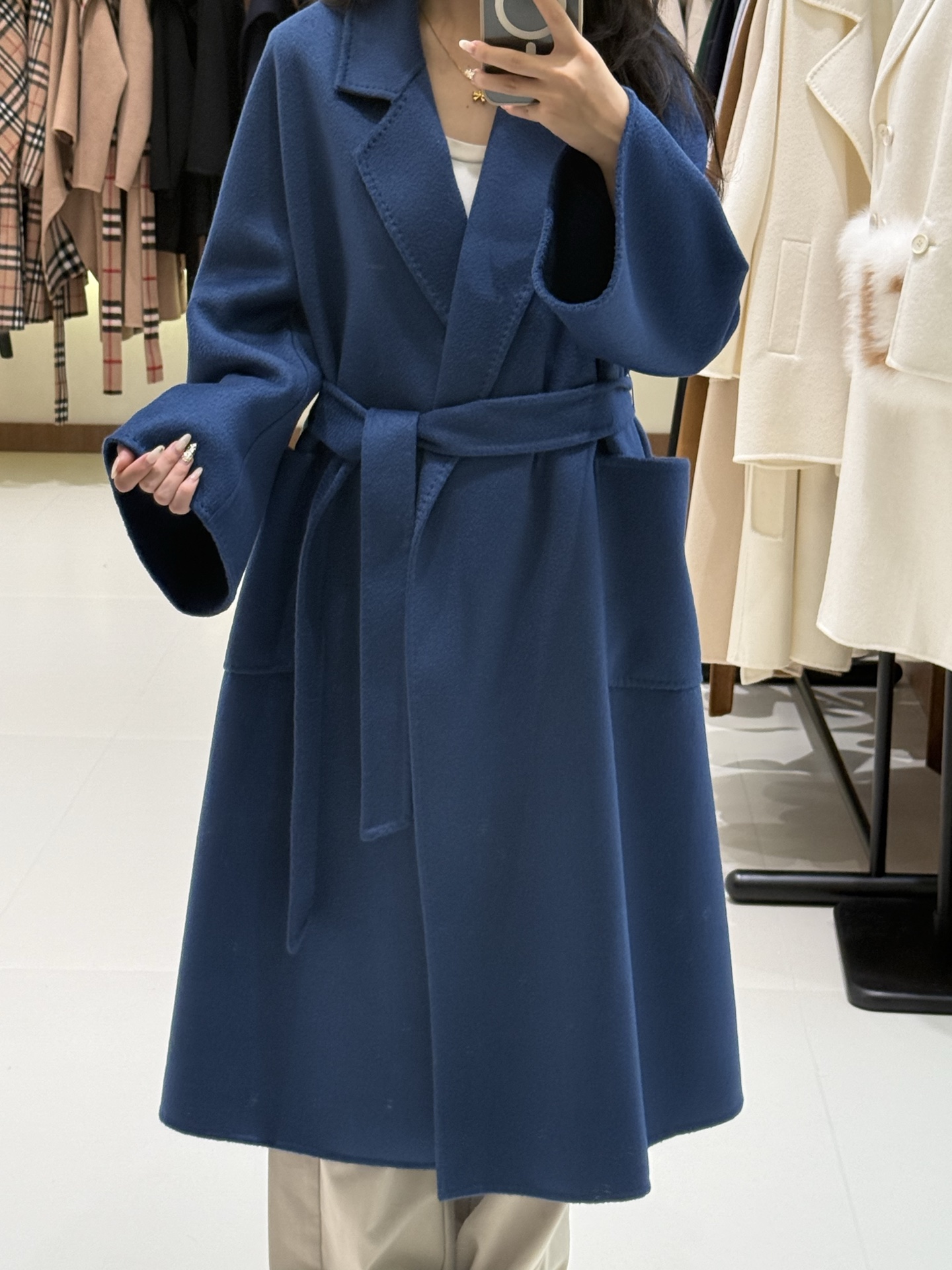 Elegante Max Mara Blauwe Wollen Jas met Riem - Tijdloze Stijl