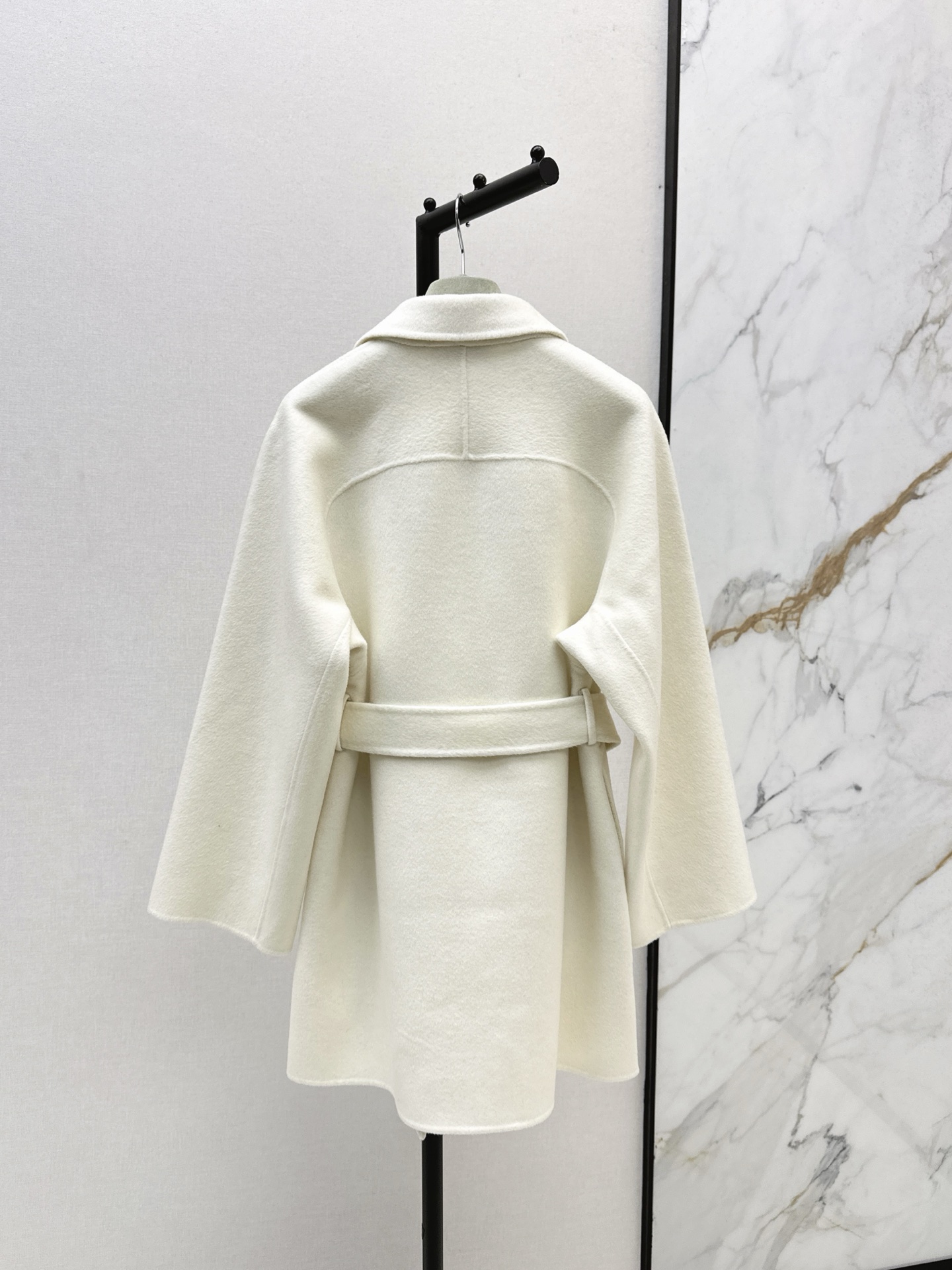 Tags: Elegante Damesjas, Herfst Winter Jas, Leren Accent Jas, Off-White Jas, Riemjas, Wollen Jas Dames