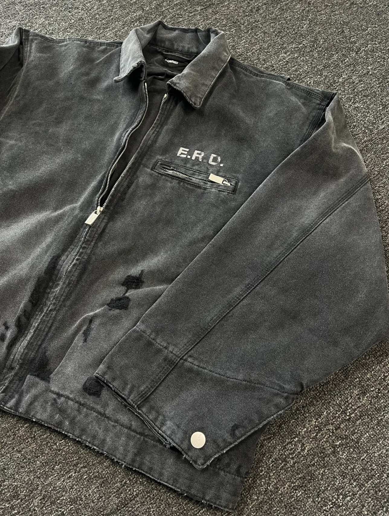 Stoere ERD Detroit jas in gewassen zwart canvas. Dubbellaags, oversized pasvorm, perfect voor laagjes. Unisex.