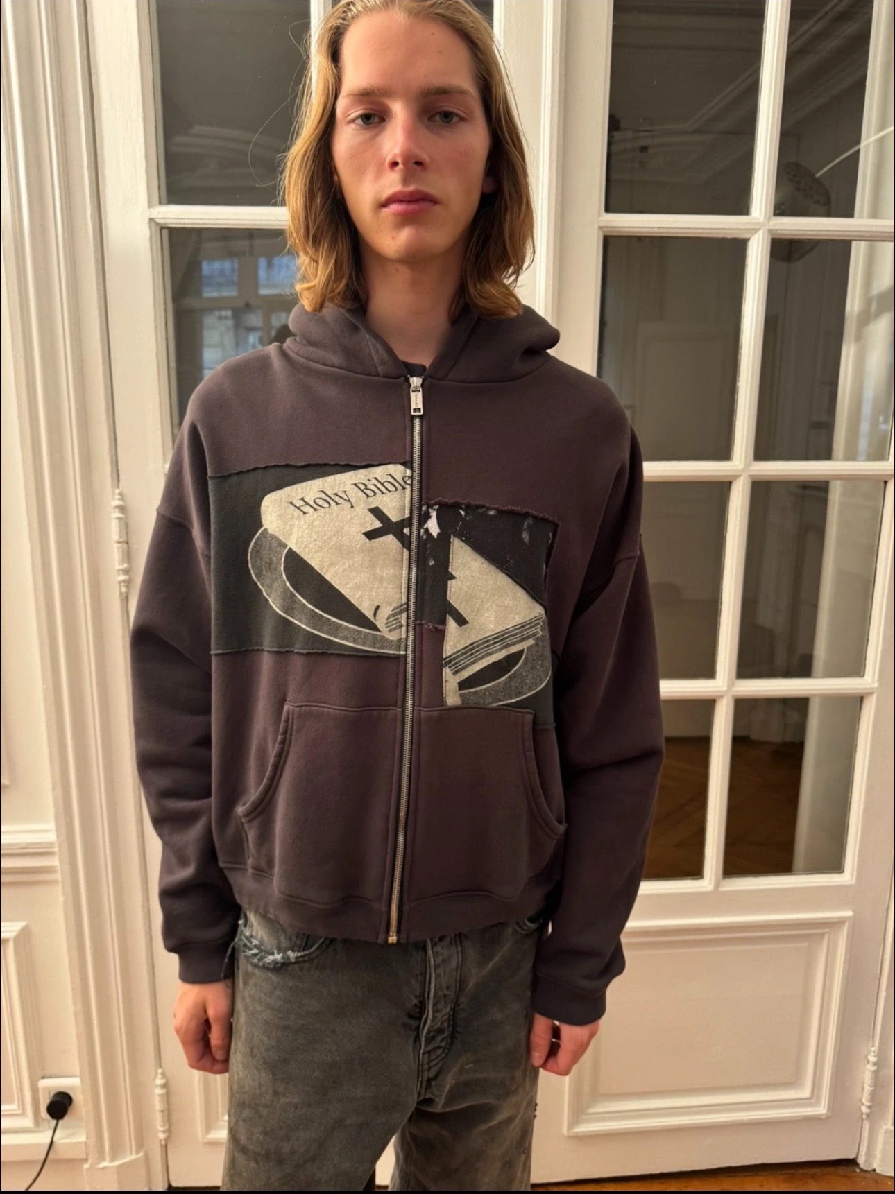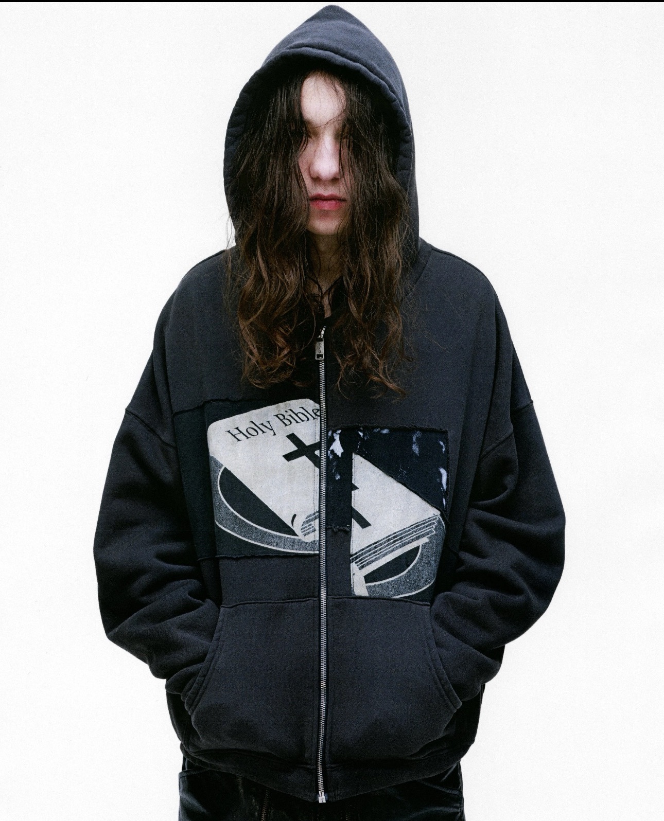 Enfants Riches Déprimés SS25 Holy Bible Zip Hoodie - Water Washed Black