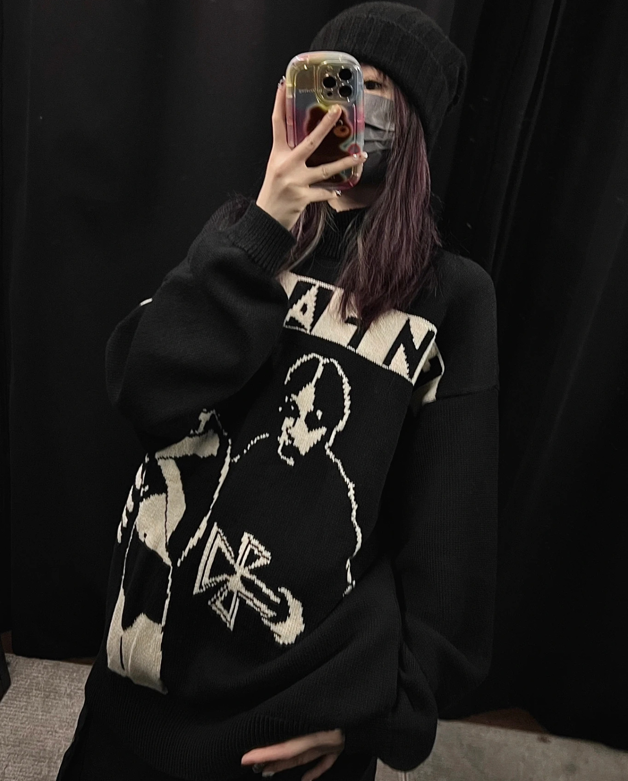 Tags: Designer Trui Heren, Enfants Riches Déprimés Trui, Erd Trui Zwart, Jacquard Trui Hoge Kraag, Luxe Streetwear Trui