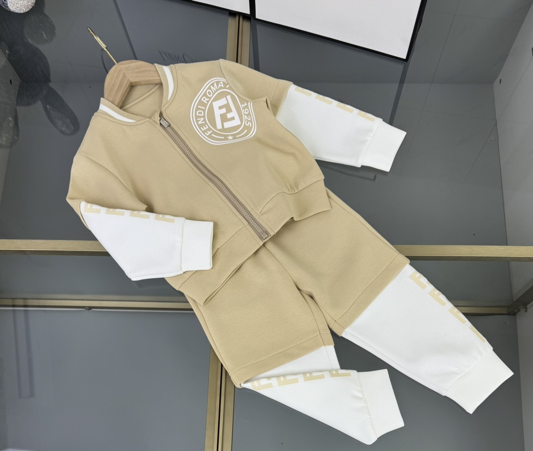 Tags: Baseball Kraag Set, Beige Witte Set, Designer Kinder Set, Fendi Kinderkleding, Kinder Rits Set, Luxe Kinderkleding