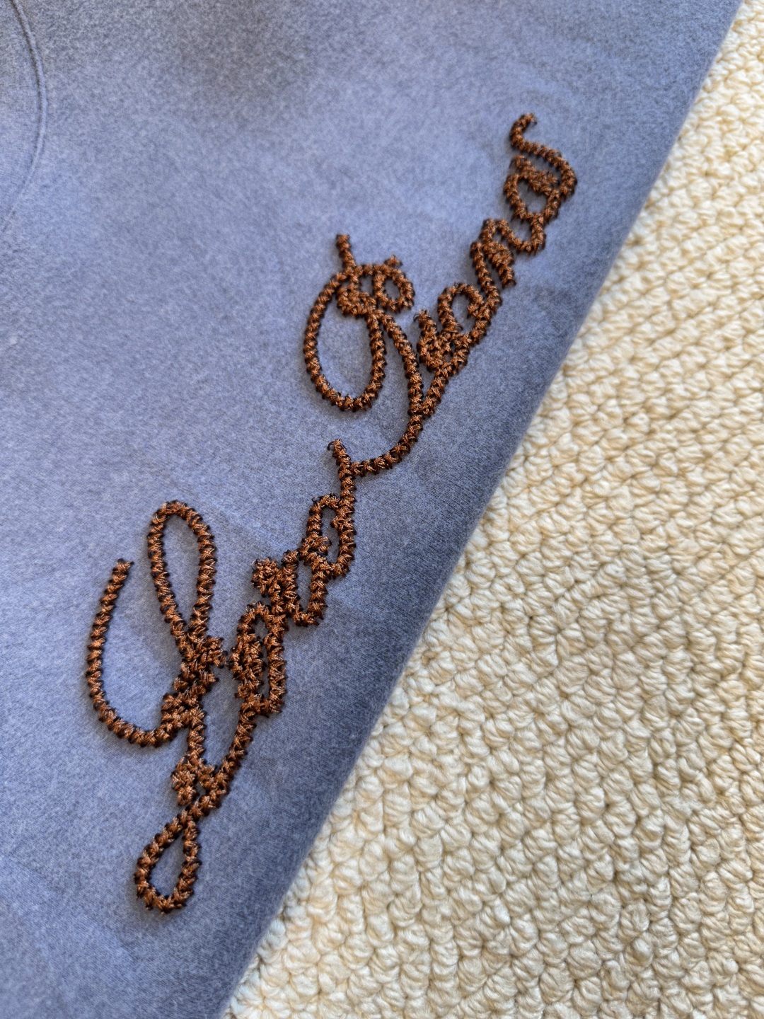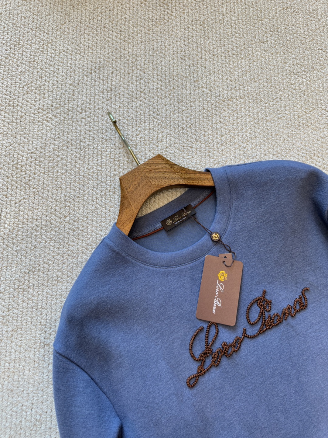 Tags: Blauwe Dames Trui, Comfortabele Dameskleding, Dikke Stof Trui, Geborduurde Trui, Loro Piana Trui, Luxe Dames Trui