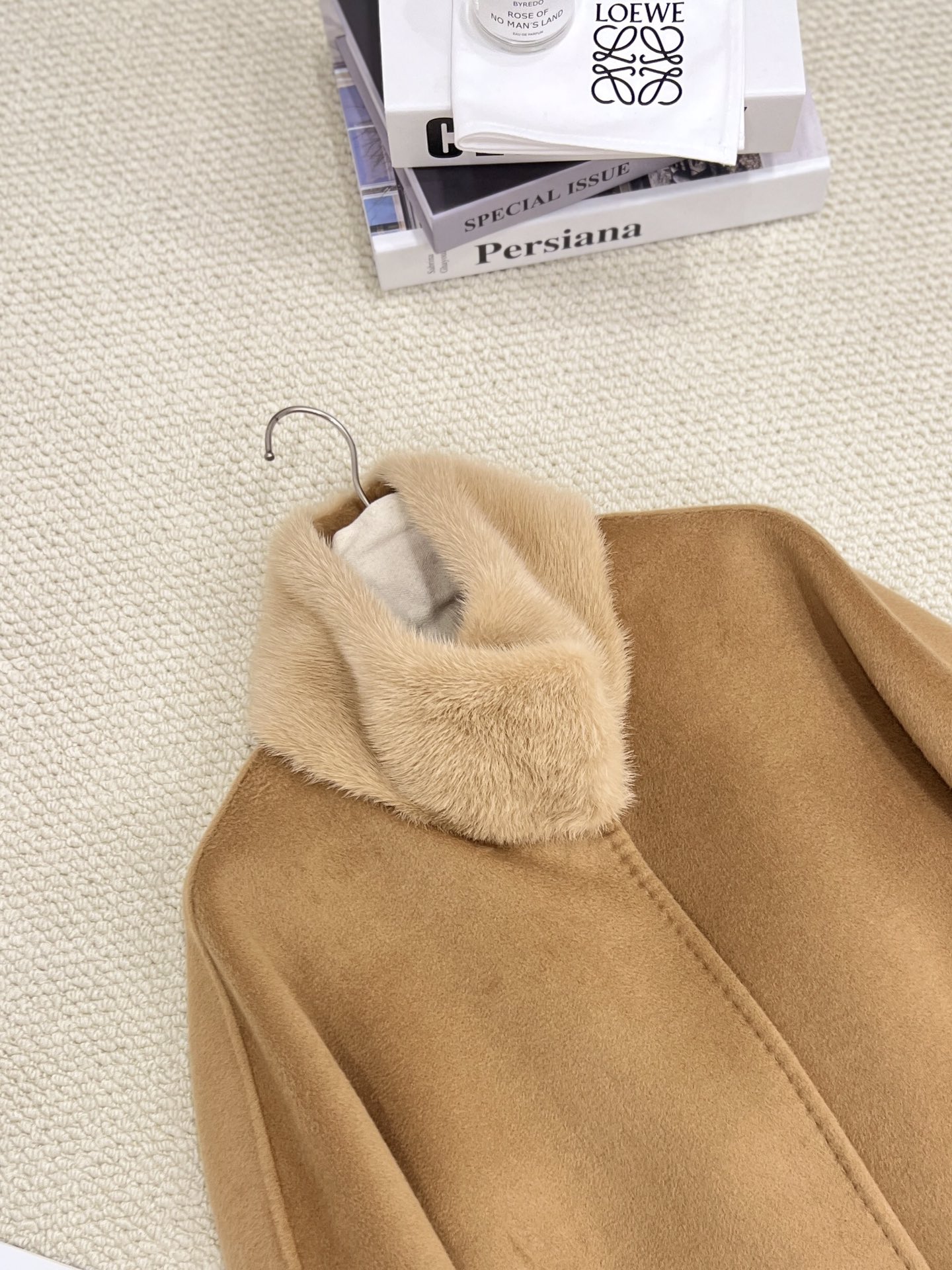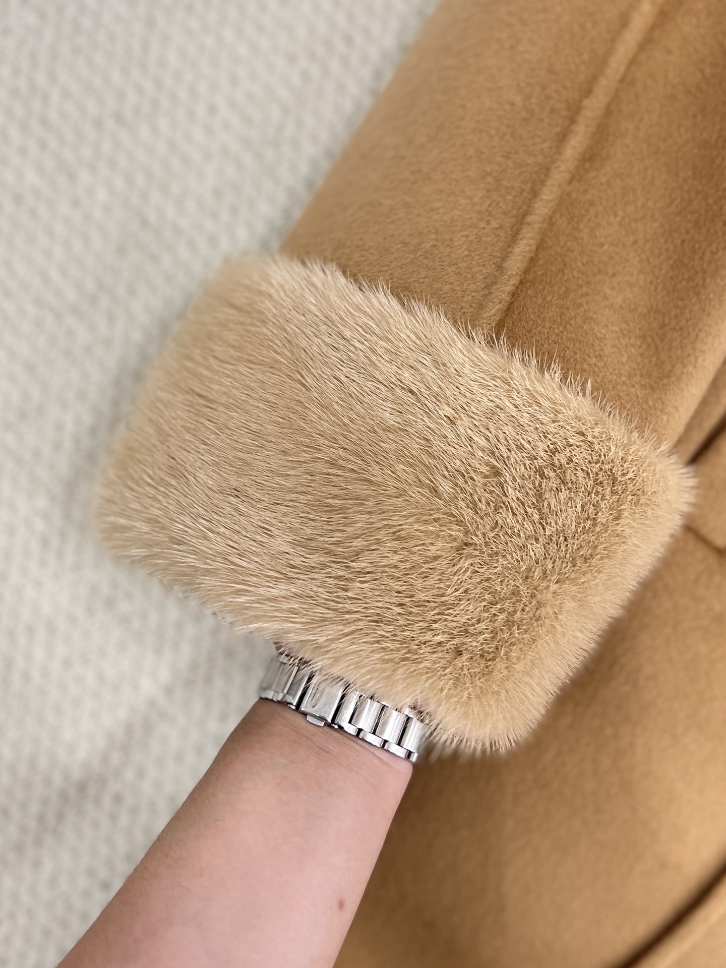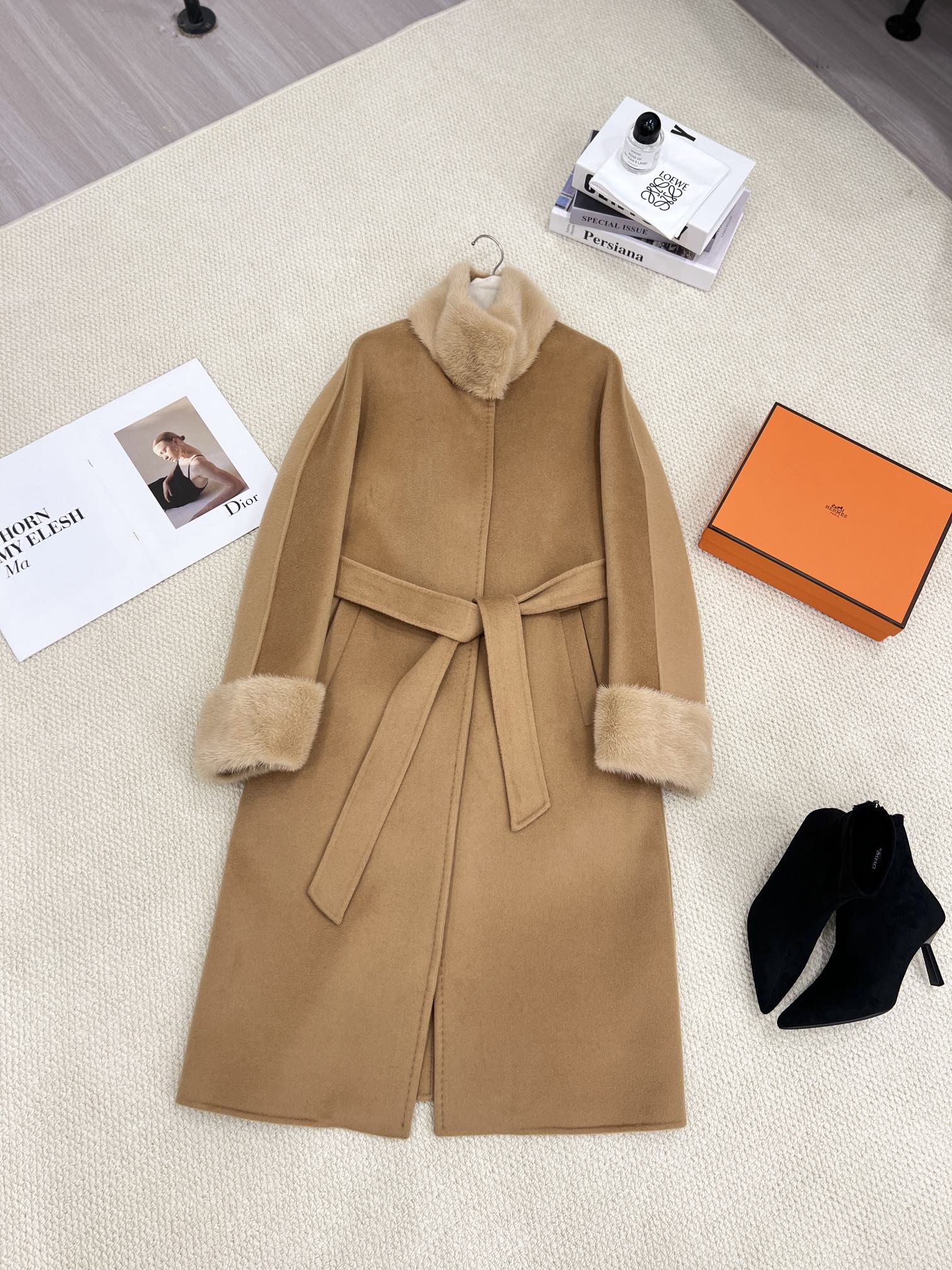 - Materiaal: Kasjmier, Wol, Bont, Zijde(Voering).