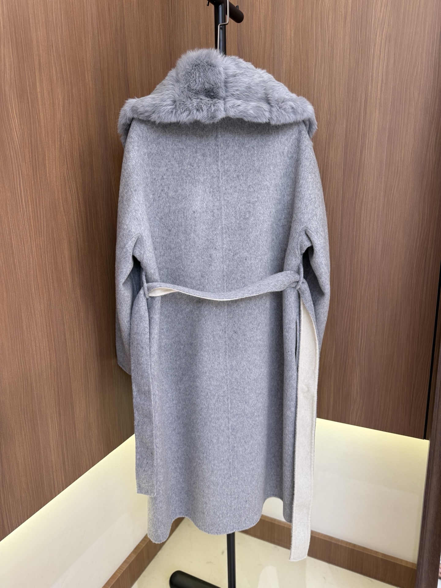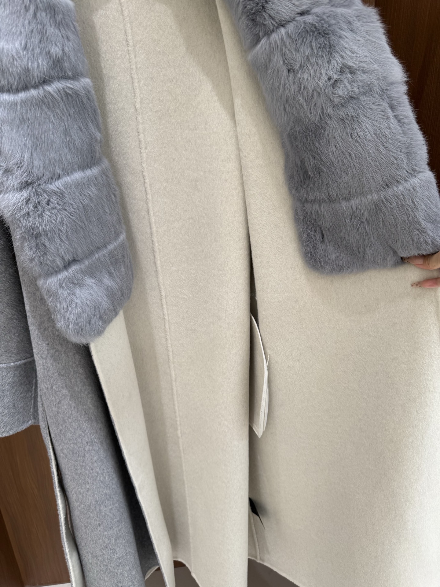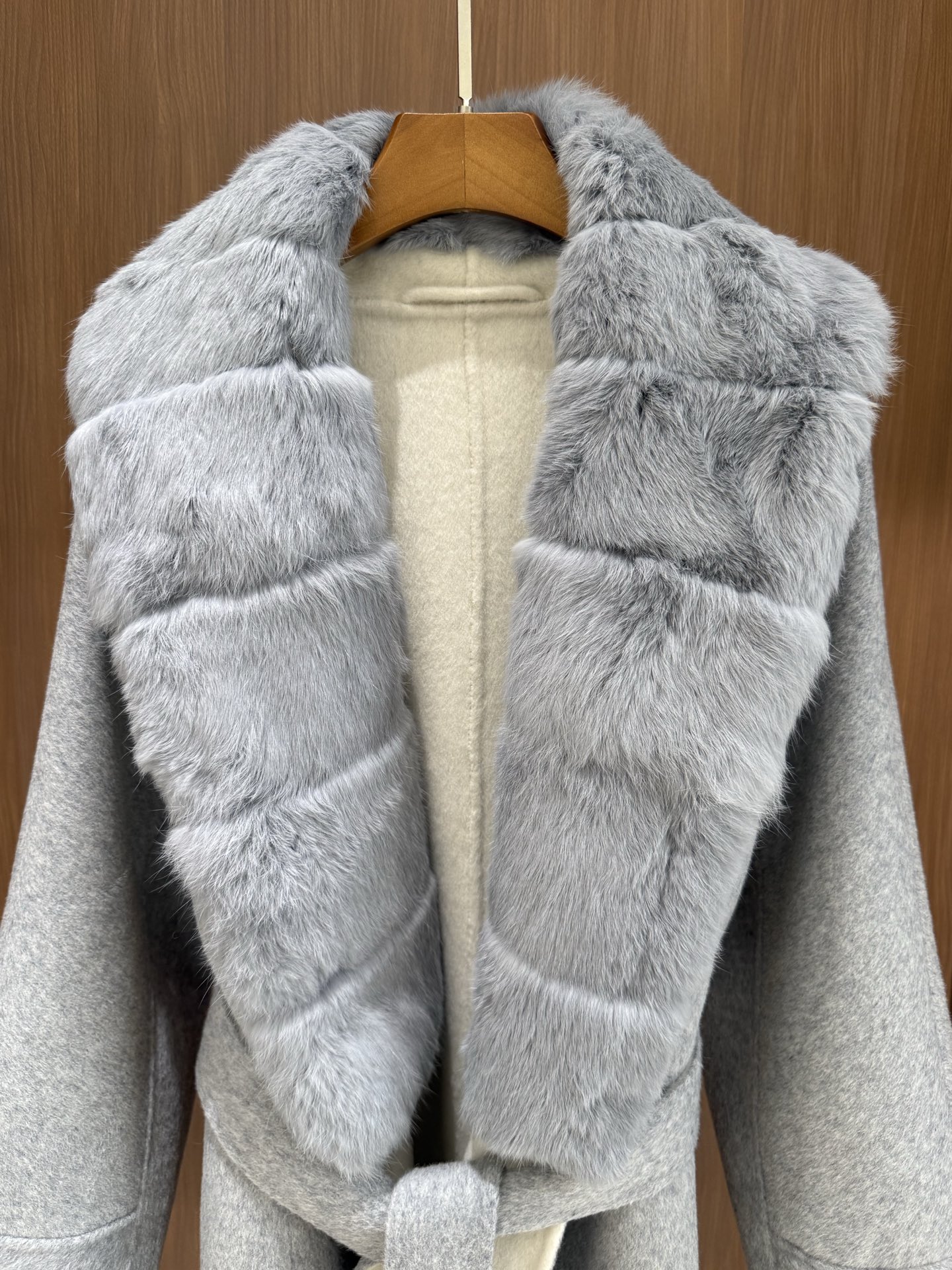 Tags: Elegante Kasjmier Mantel, Grijze Wollen Jas, Loro Piana Kasjmier Jas, Luxe Winterjas Dames, Wollen Jas Met Bont