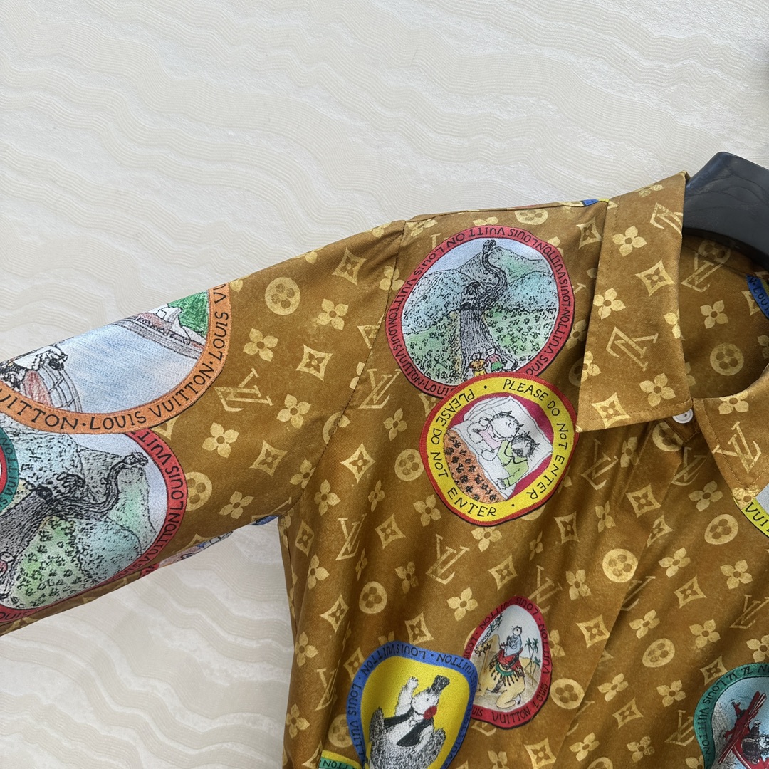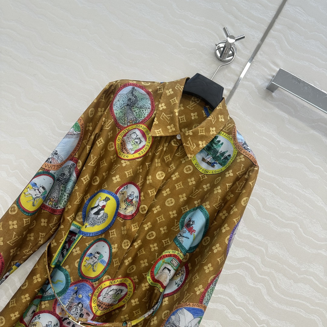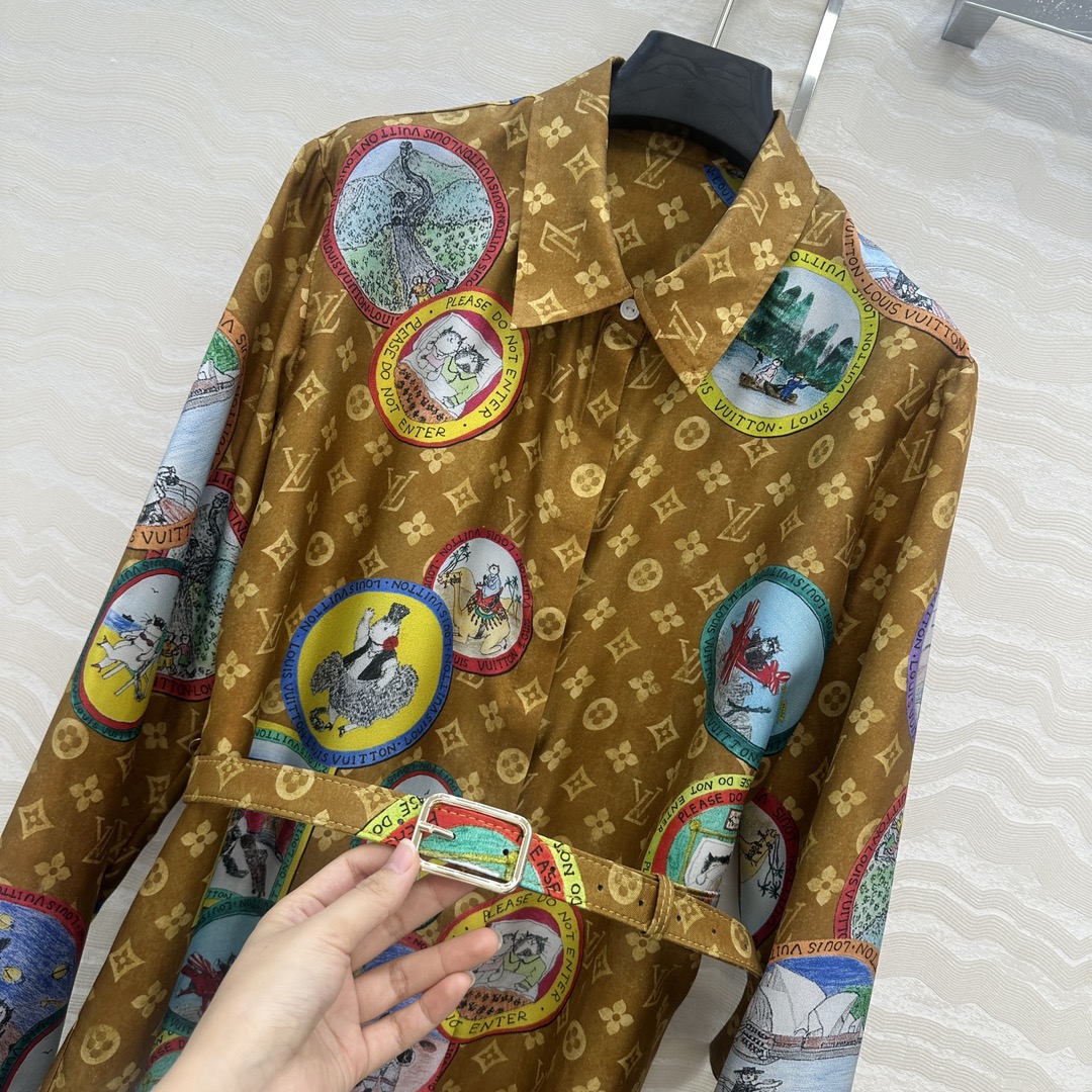 Louis Vuitton Catogram Zijden Overhemdjurk met Riem - Exclusieve Damesmode