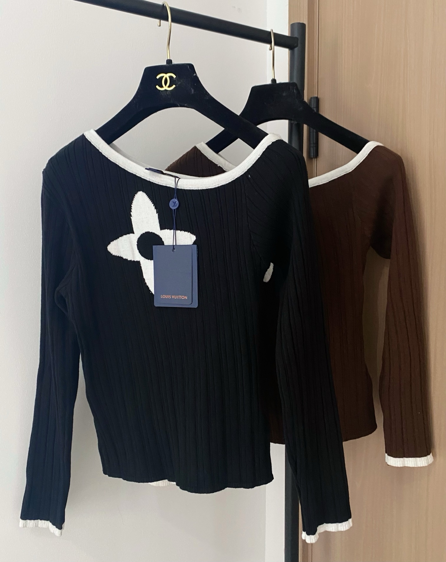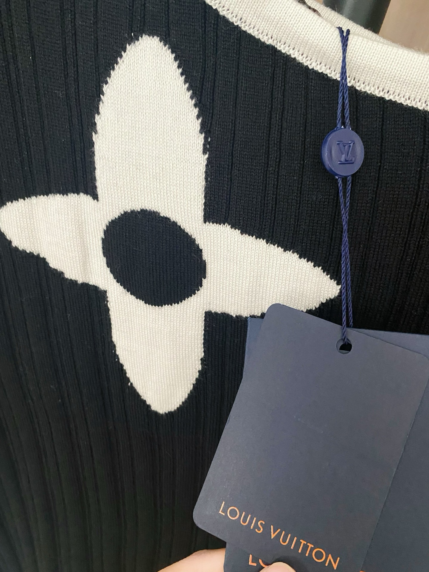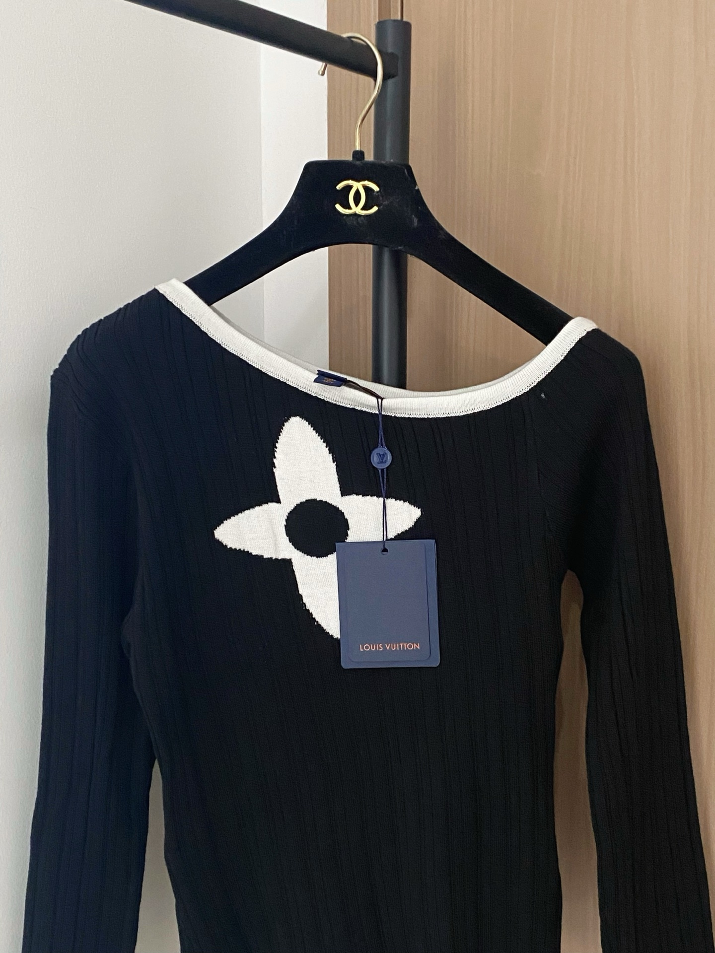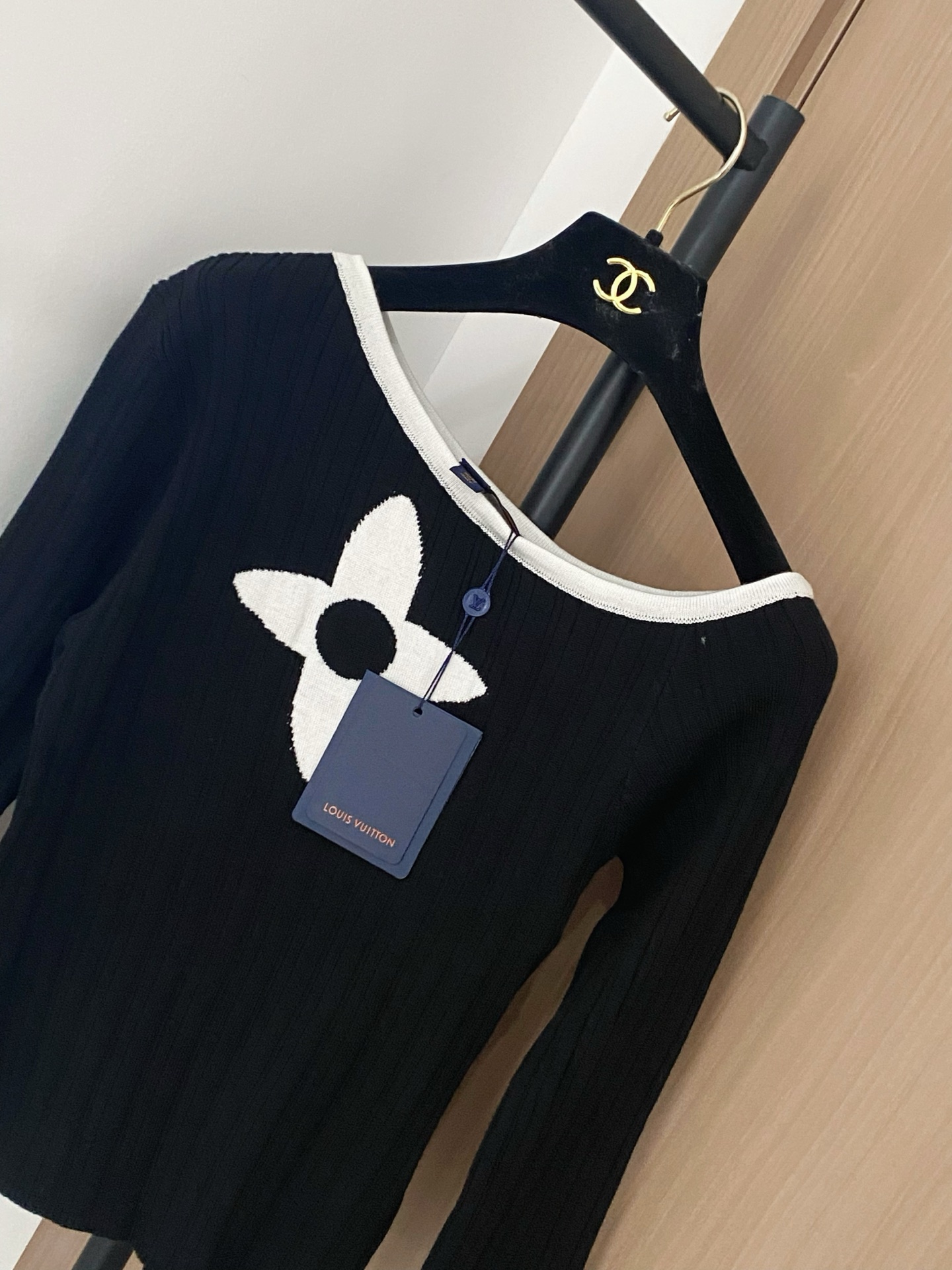 Tags: Dames Top Lange Mouwen, Designer Top Zwart Wit, Elegante Dameskleding, Louis Vuitton Top, Luxe Top met Bloemmotief, Stijlvolle Dames Top