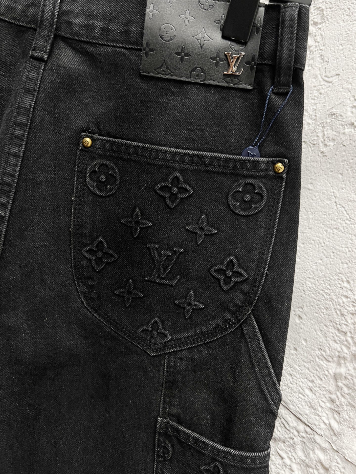 Louis Vuitton Zwarte Denim Werkshorts met Monogram Reliëf - Stijlvol en Duurzaam