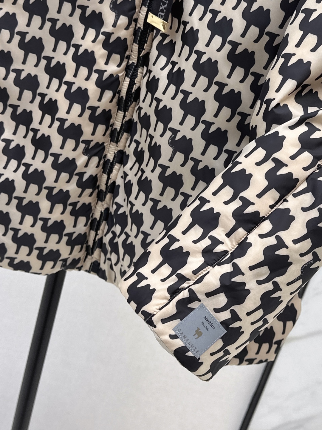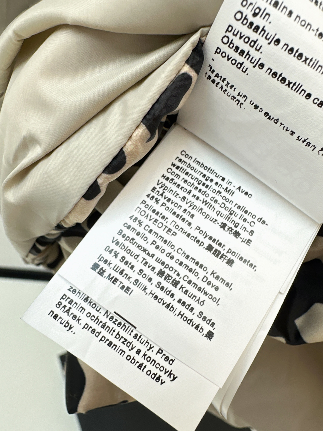 Blijf warm en stijlvol met deze Max Mara donsjas met kameelprint, inclusief bijpassende tas. Perfect voor de herfst en winter!