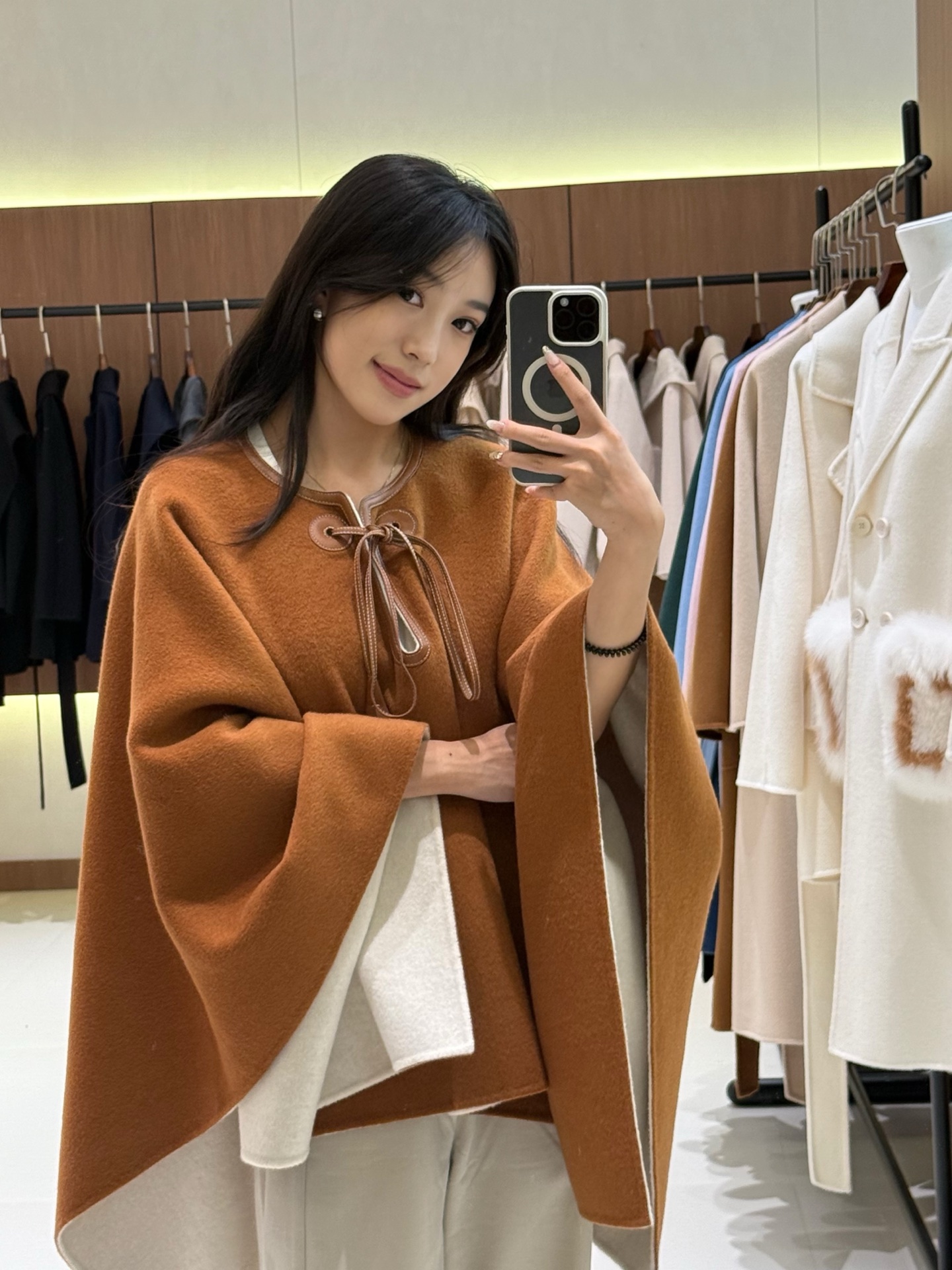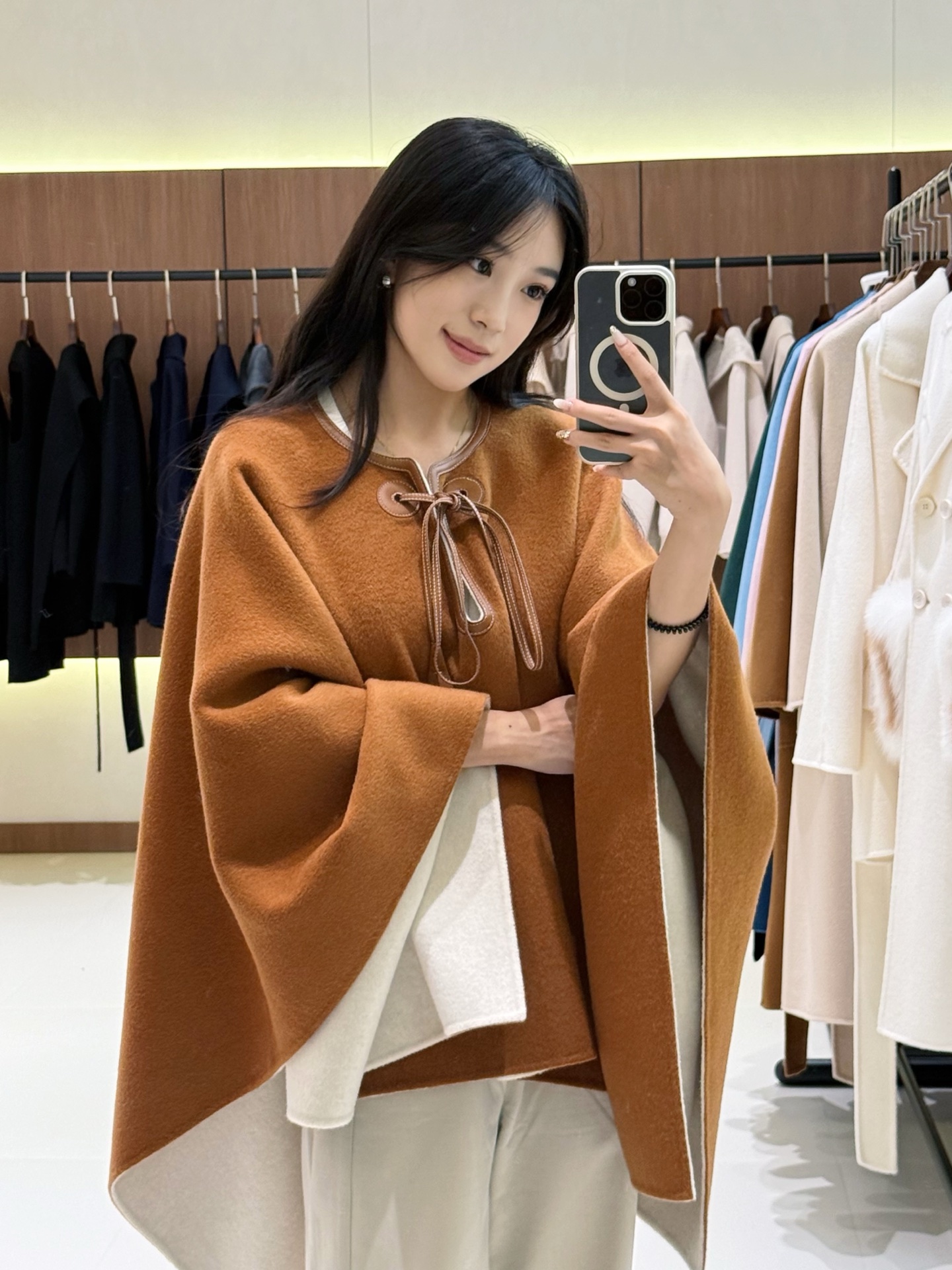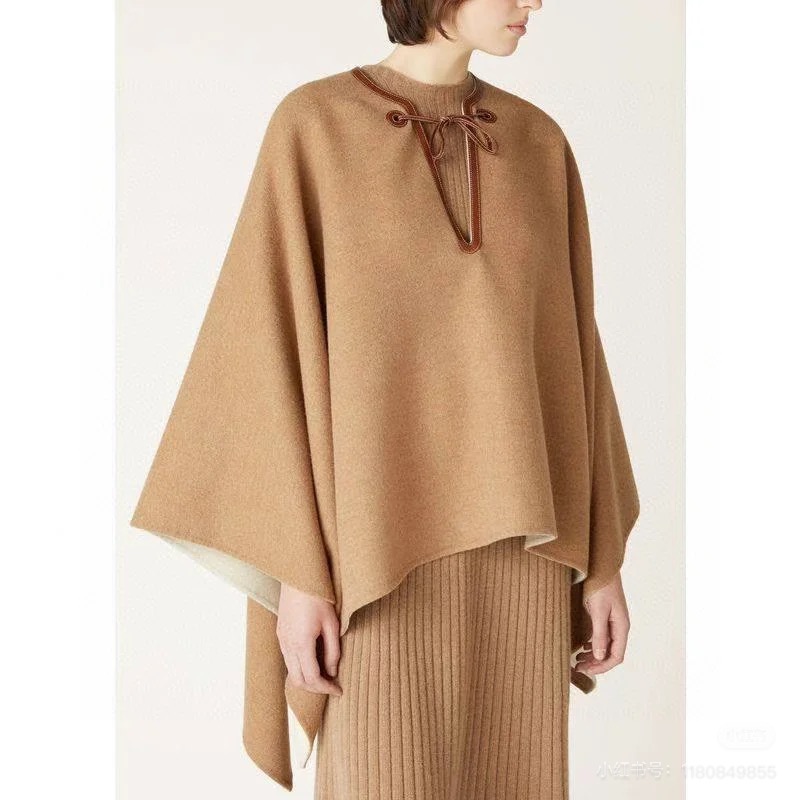 Tags: Camelkleurige Poncho, Elegante Damesponcho, Leren Details Poncho, Luxe Dameskleding, Max Mara Poncho, Modieuze Poncho