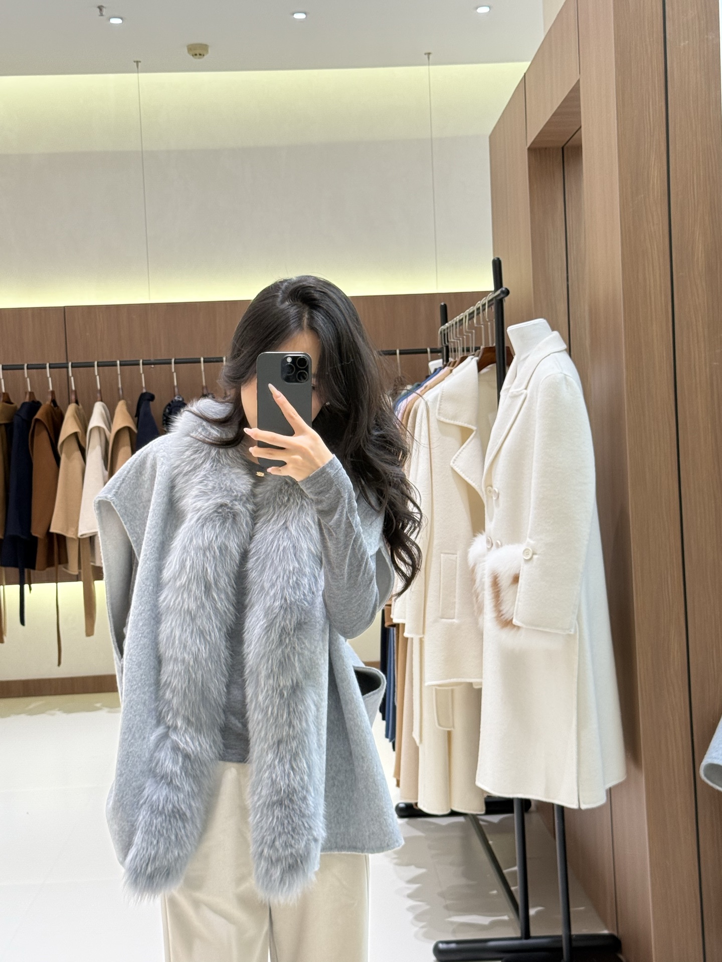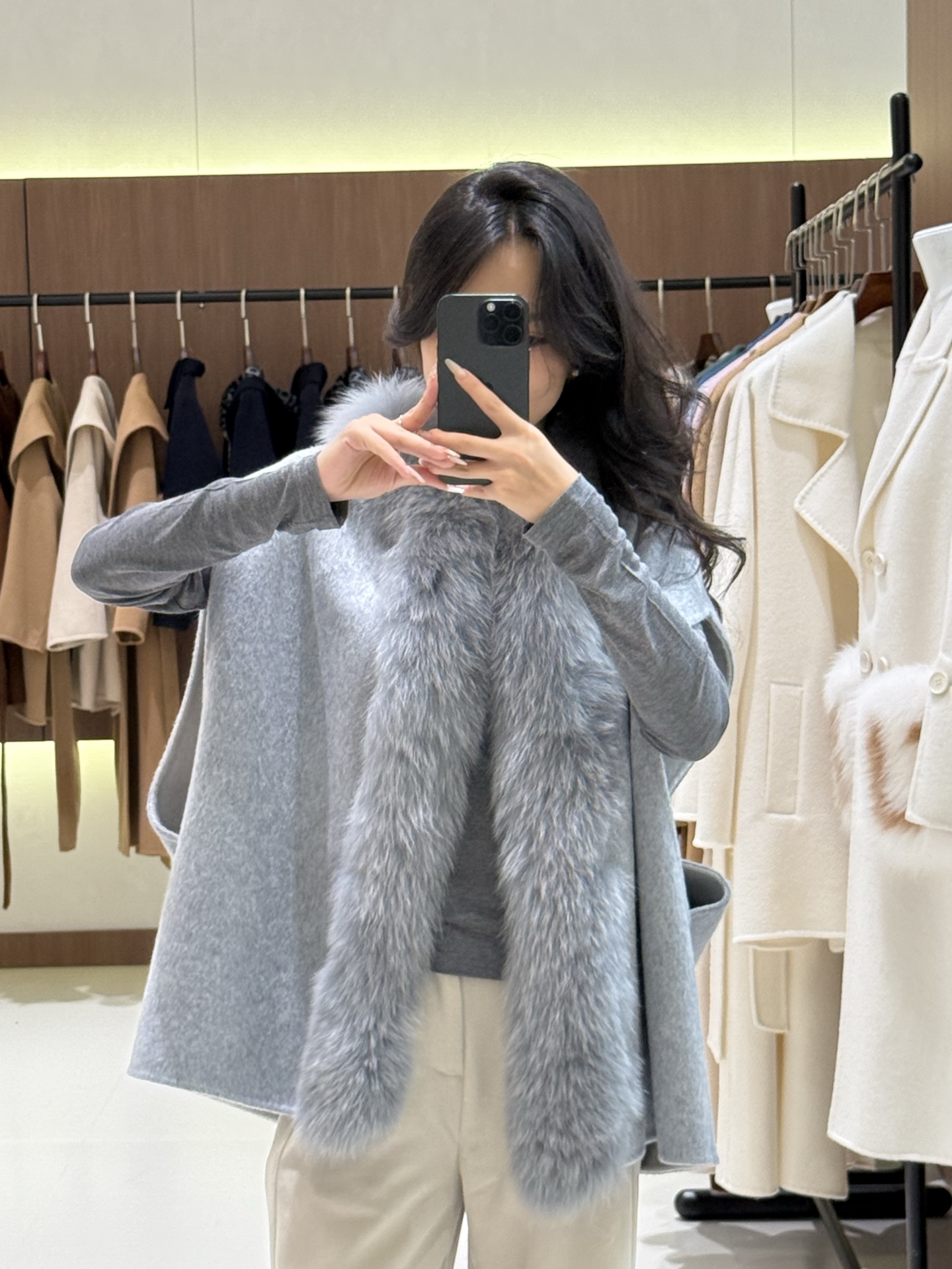 Max Mara Grijze Cape met Bontrand - Stijlvolle Dameskleding