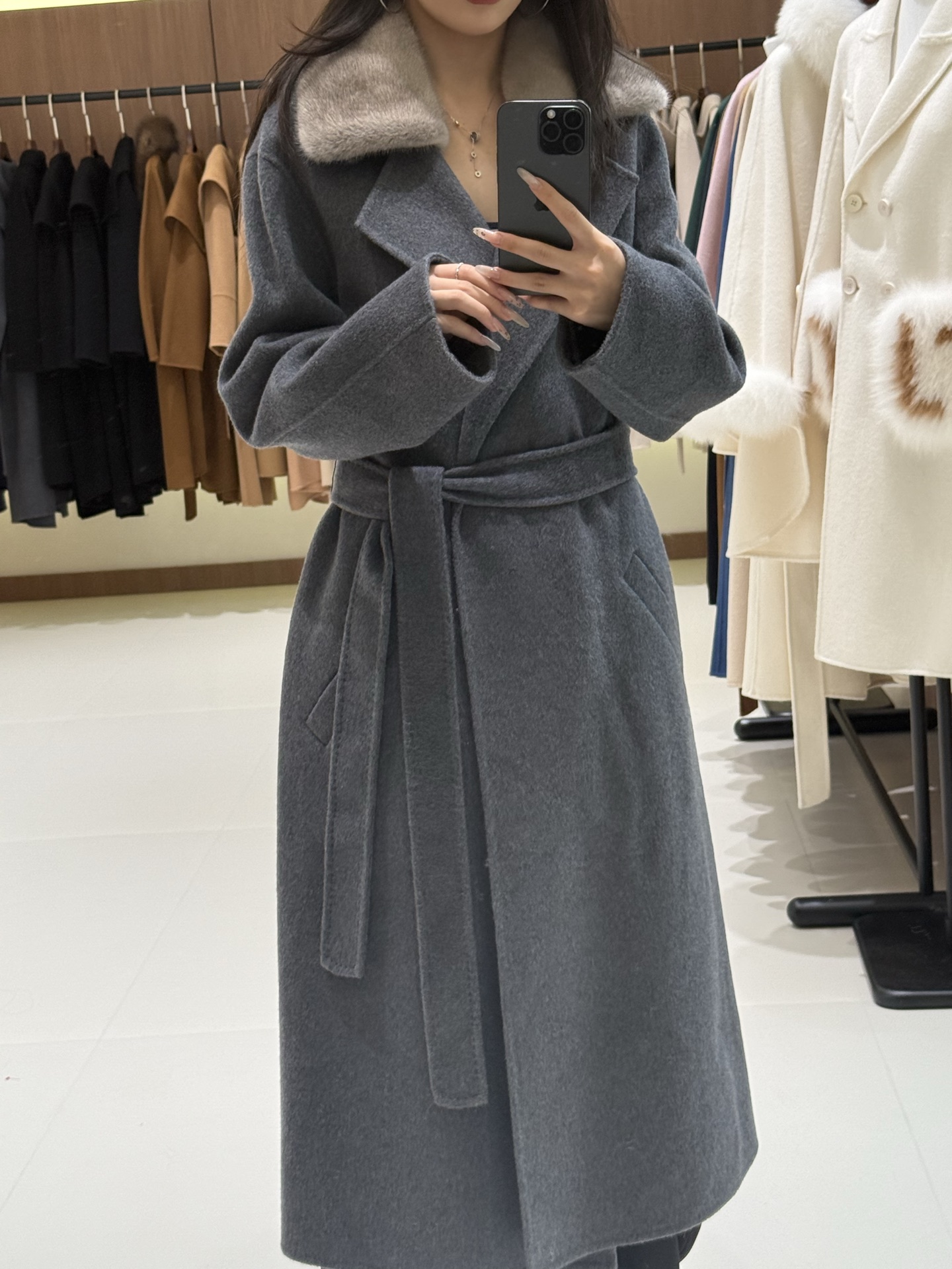 Tags: Elegante Damesjas, Lange Winterjas Dames, Luxe Dameskleding, Max Mara Grijze Jas, Wollen Jas Met Bont