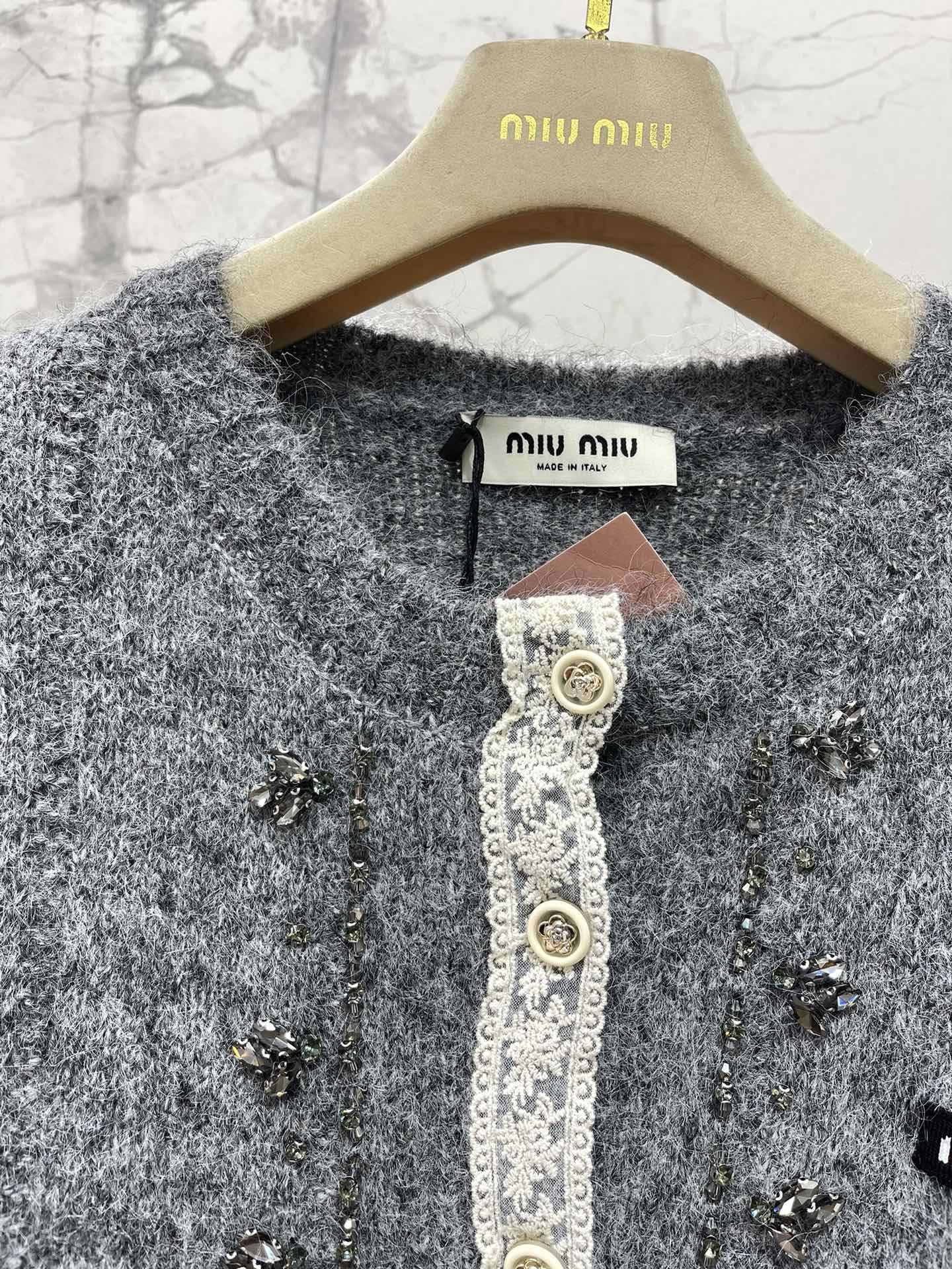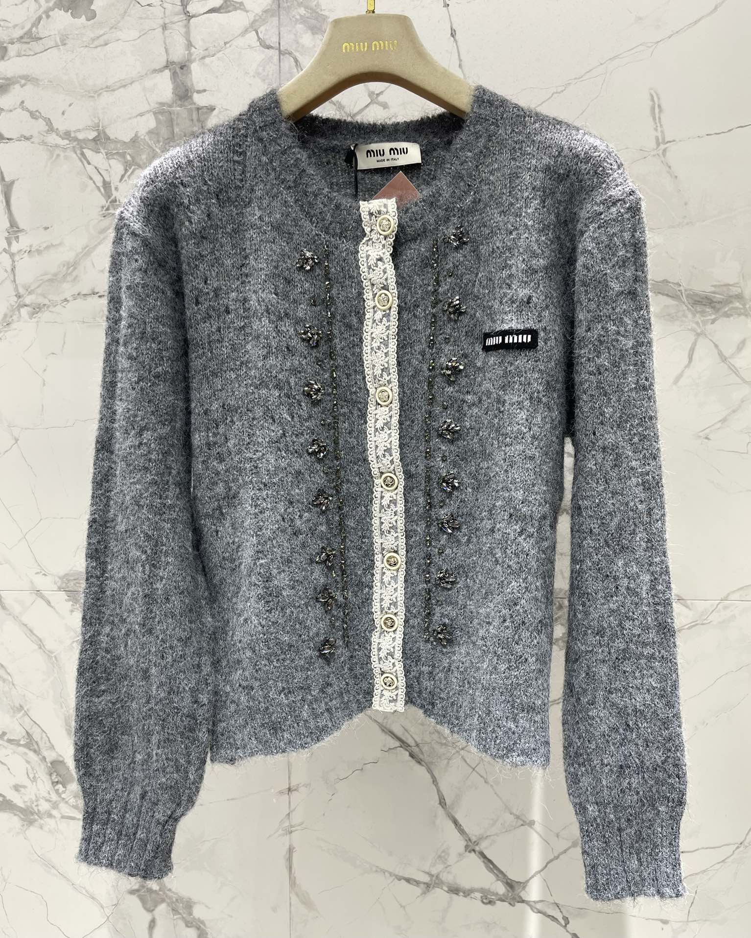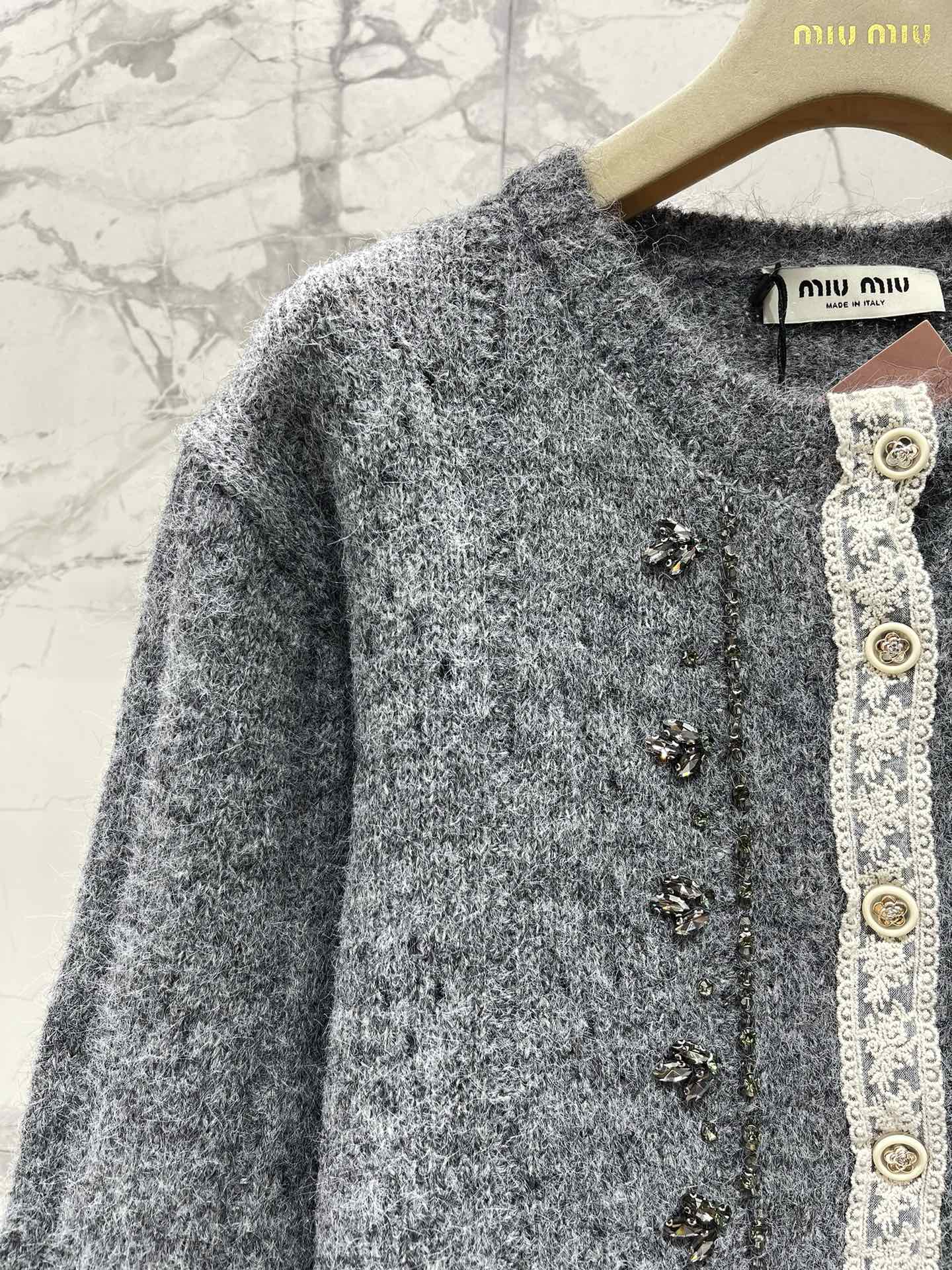 Miu Miu Gebreid Vest met Parelmoer en Kant - Stijlvol en Comfortabel