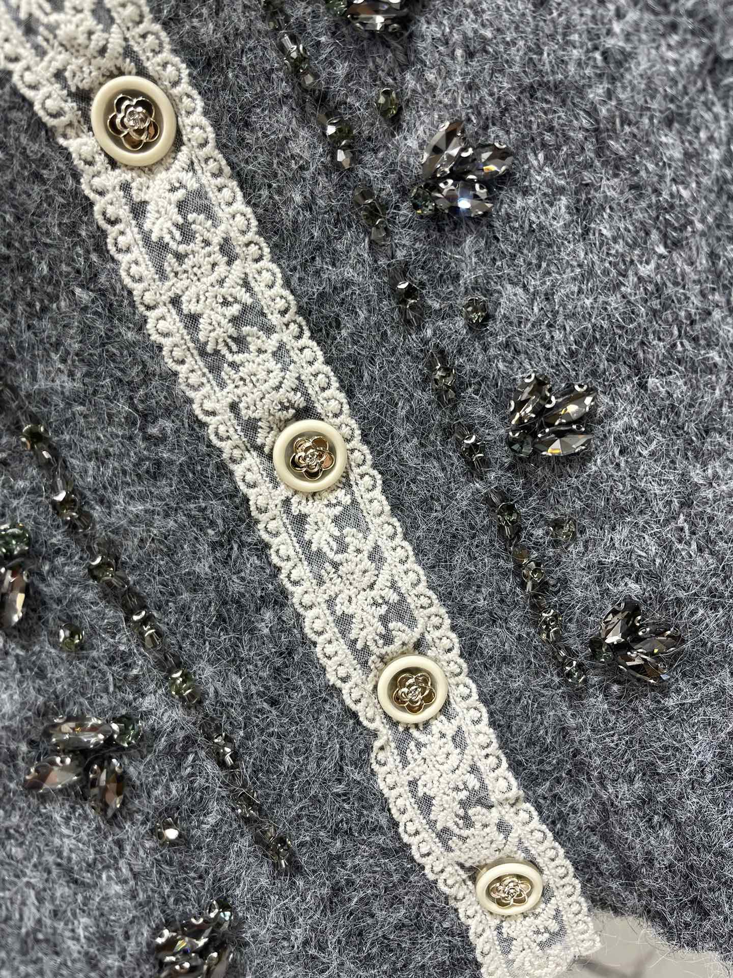 Tags: Designer Vest, Gebreid Vest Dames, Kanten Vest, Luxe Dameskleding, Miu Miu Vest, Parelmoer Vest