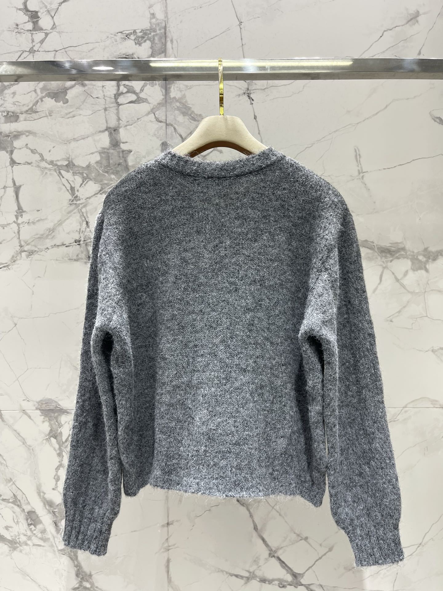 Ontdek dit prachtige Miu Miu vest, uitgevoerd in zachte wol met delicate parelmoer details en kanten randen. Perfect voor elke gelegenheid.