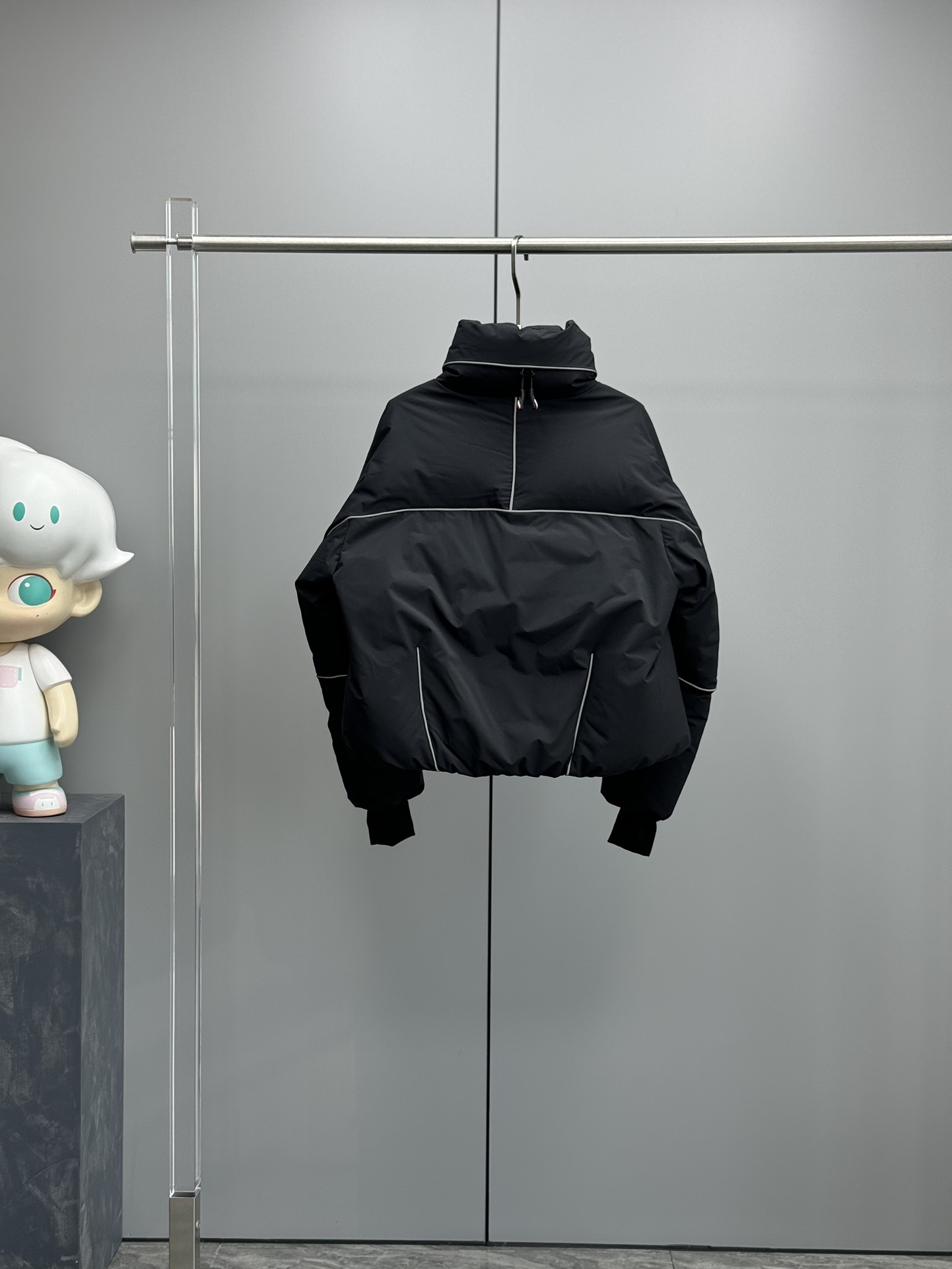 - Hoge kraag voor extra warmte en bescherming tegen de wind.