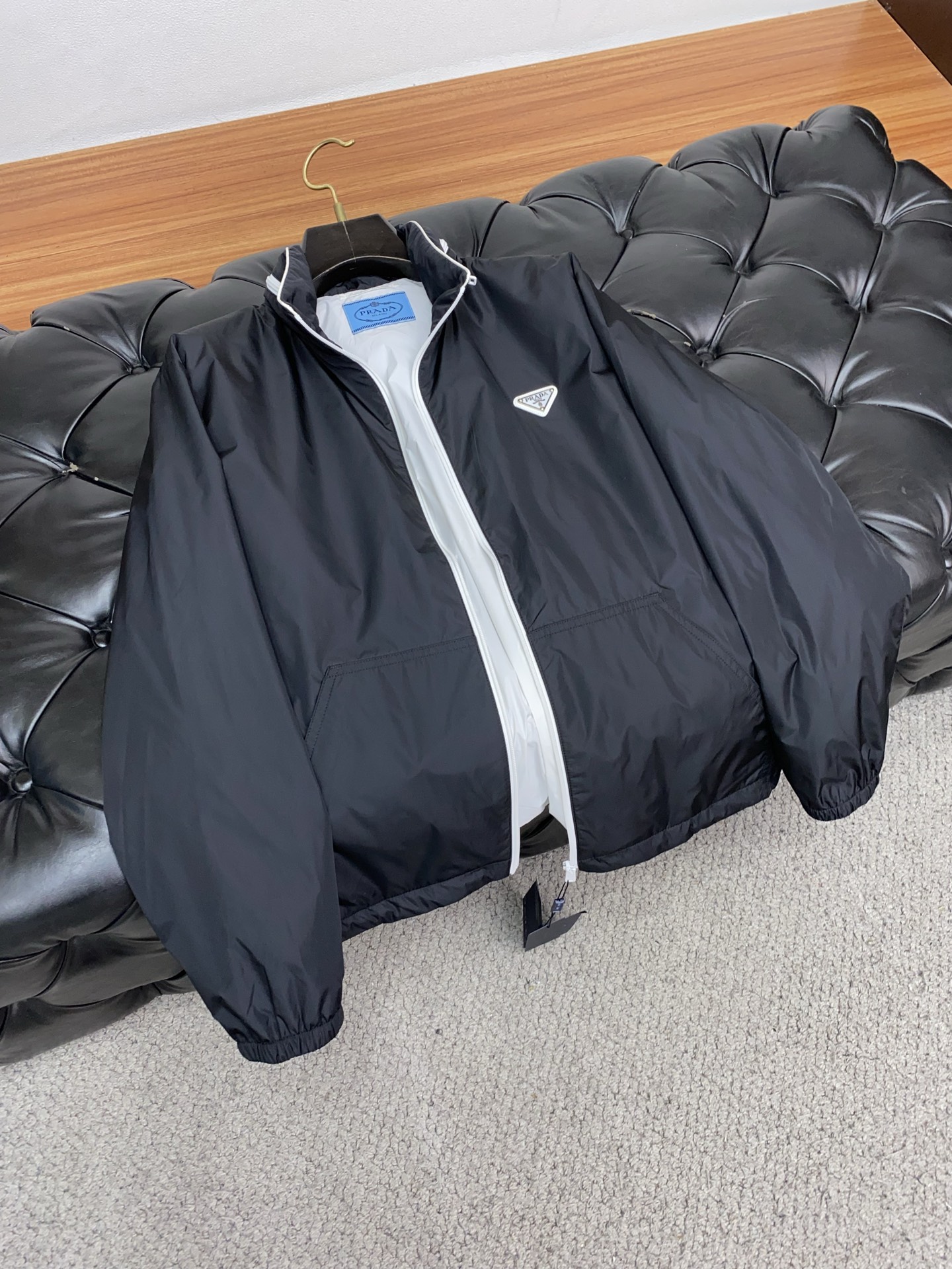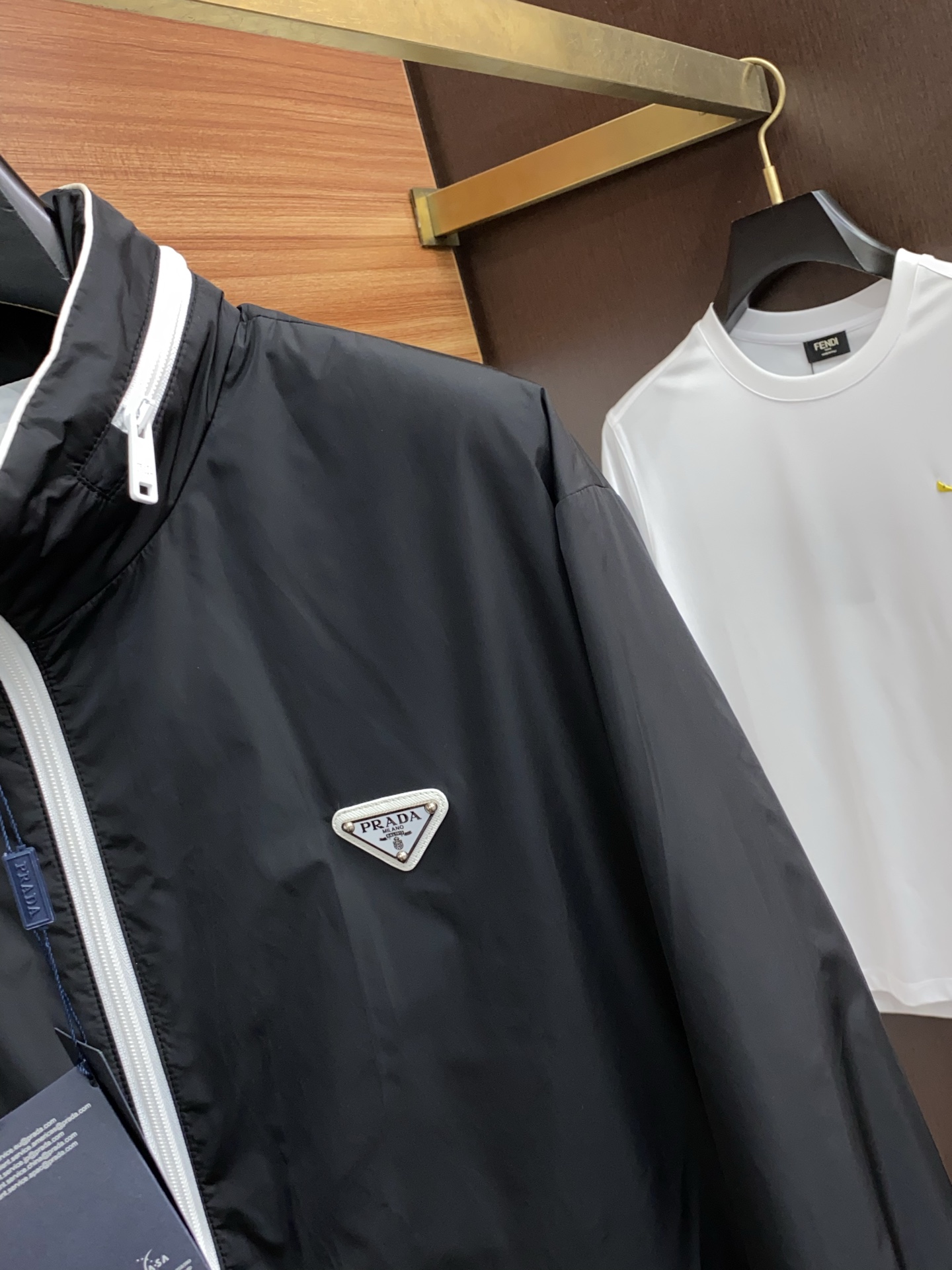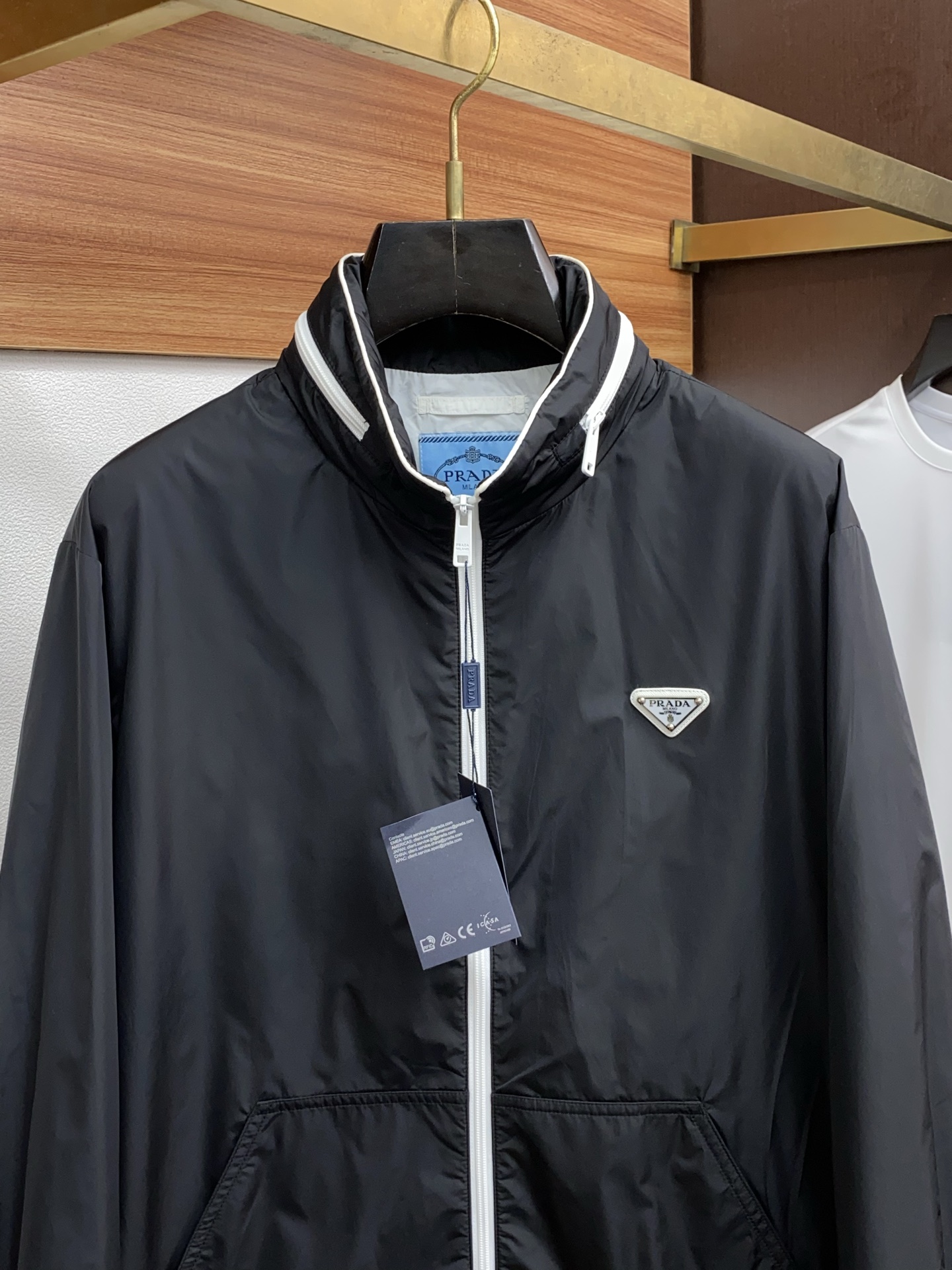 Tags: Luxe Heren Jas, Moderne Outdoor Jas, Prada Jas Heren, Stijlvolle Heren Kleding, Zwarte Overgangsjas