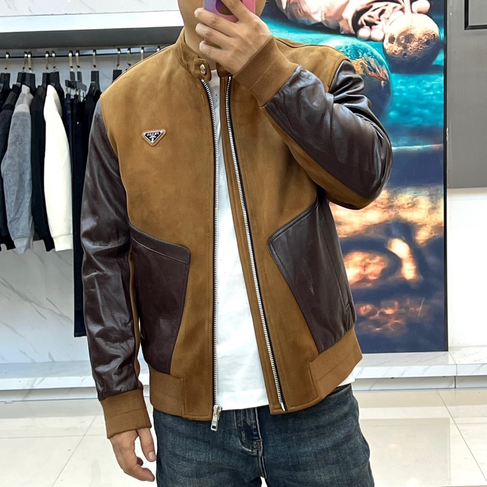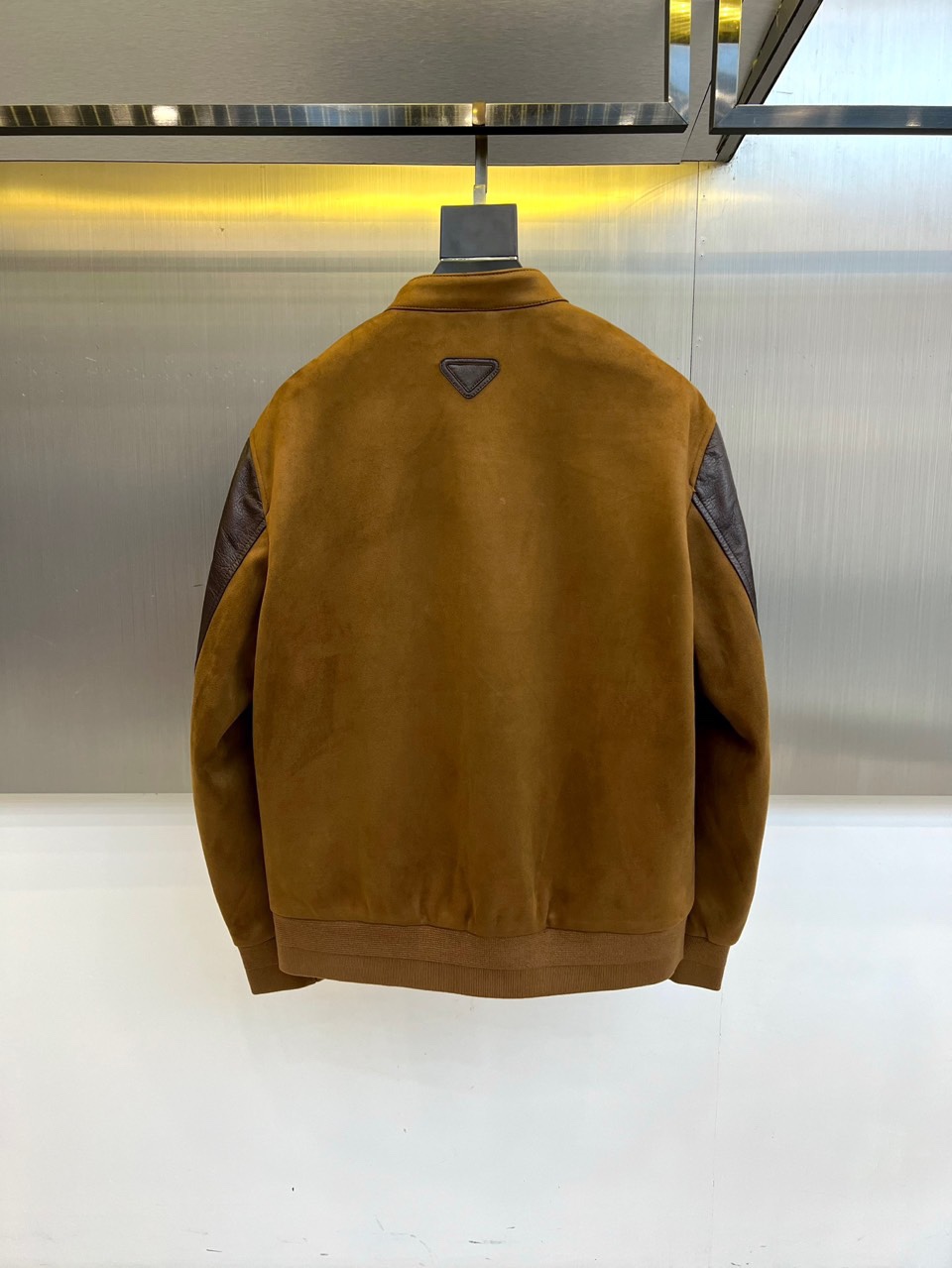 Tags: Bruin Suède Leren Jack, Dames Designer Jack, Italiaanse Dames Mode, Leren Details Jack, Luxe Dames Kleding, Prada Suède Jack
