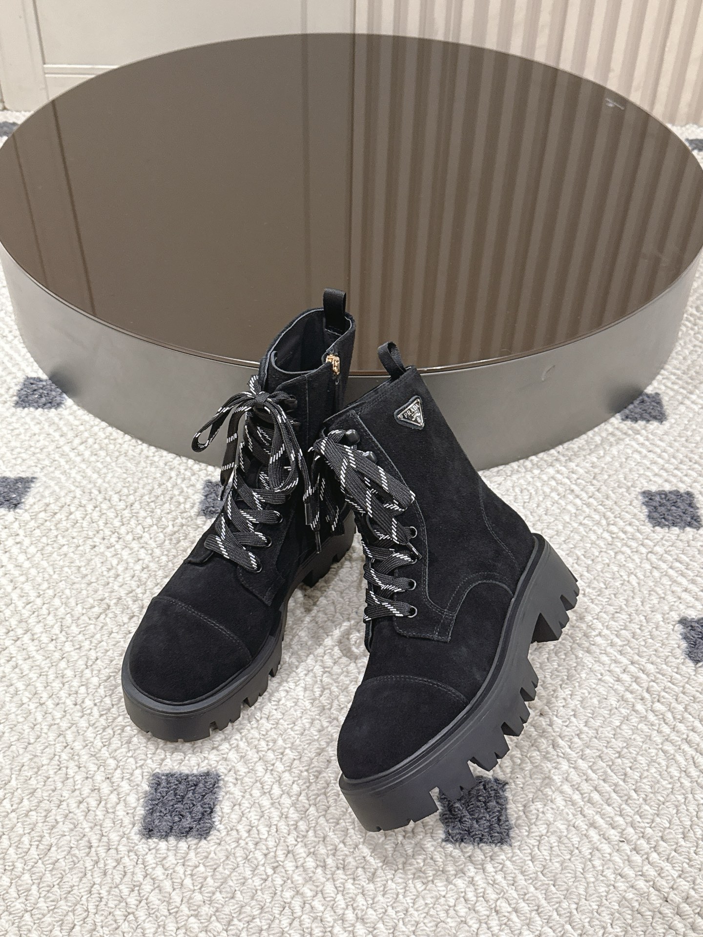 Upgrade je look met deze Prada veterlaarzen! Premium leer, comfortabele dikke zool en iconische styling. Perfect voor elke gelegenheid.