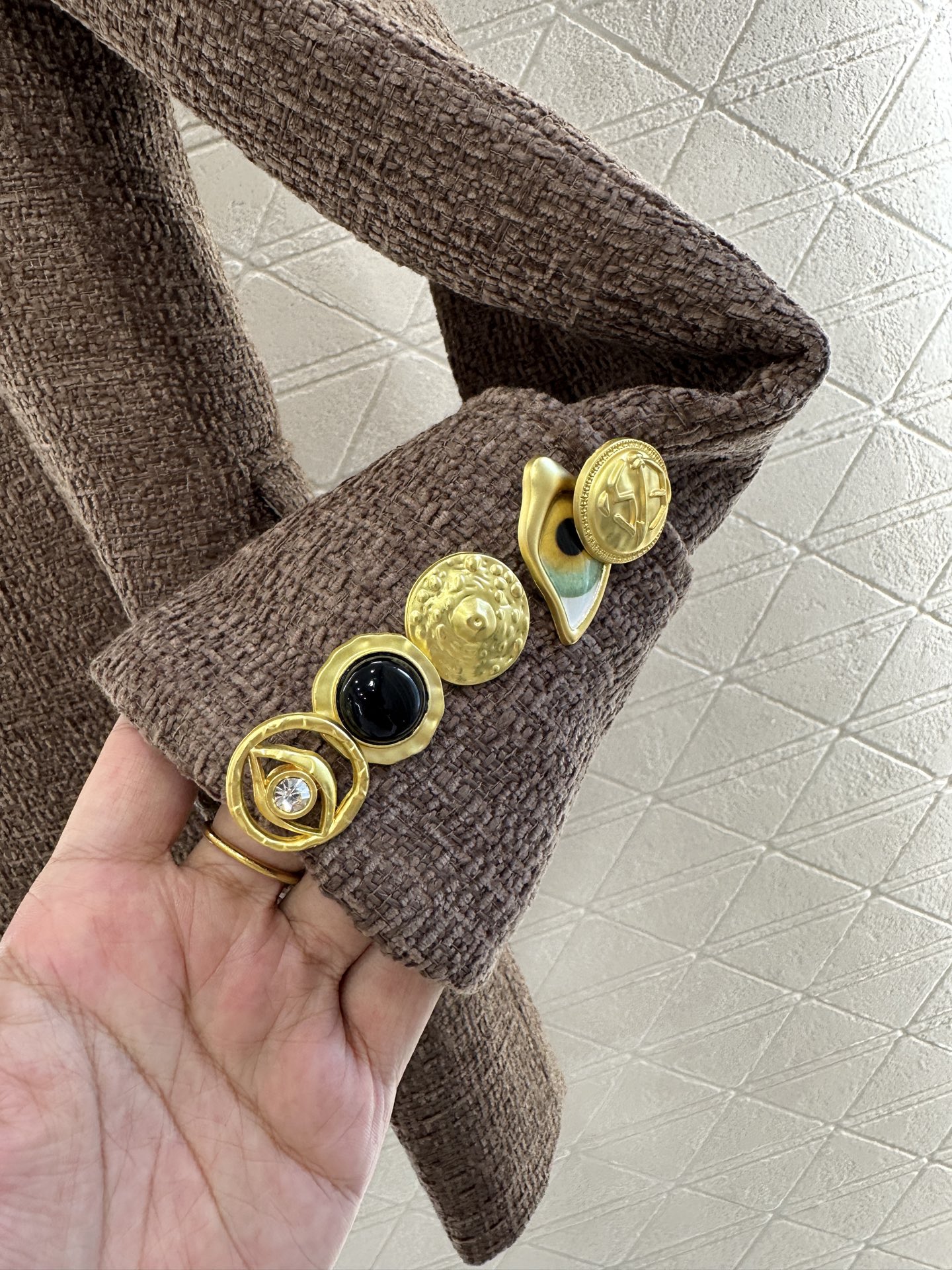 Upgrade uw garderobe met deze tweed blazer, geaccentueerd door lederen details en een opvallende Horus-oog broche. Perfect voor zowel formele als casual gelegenheden.