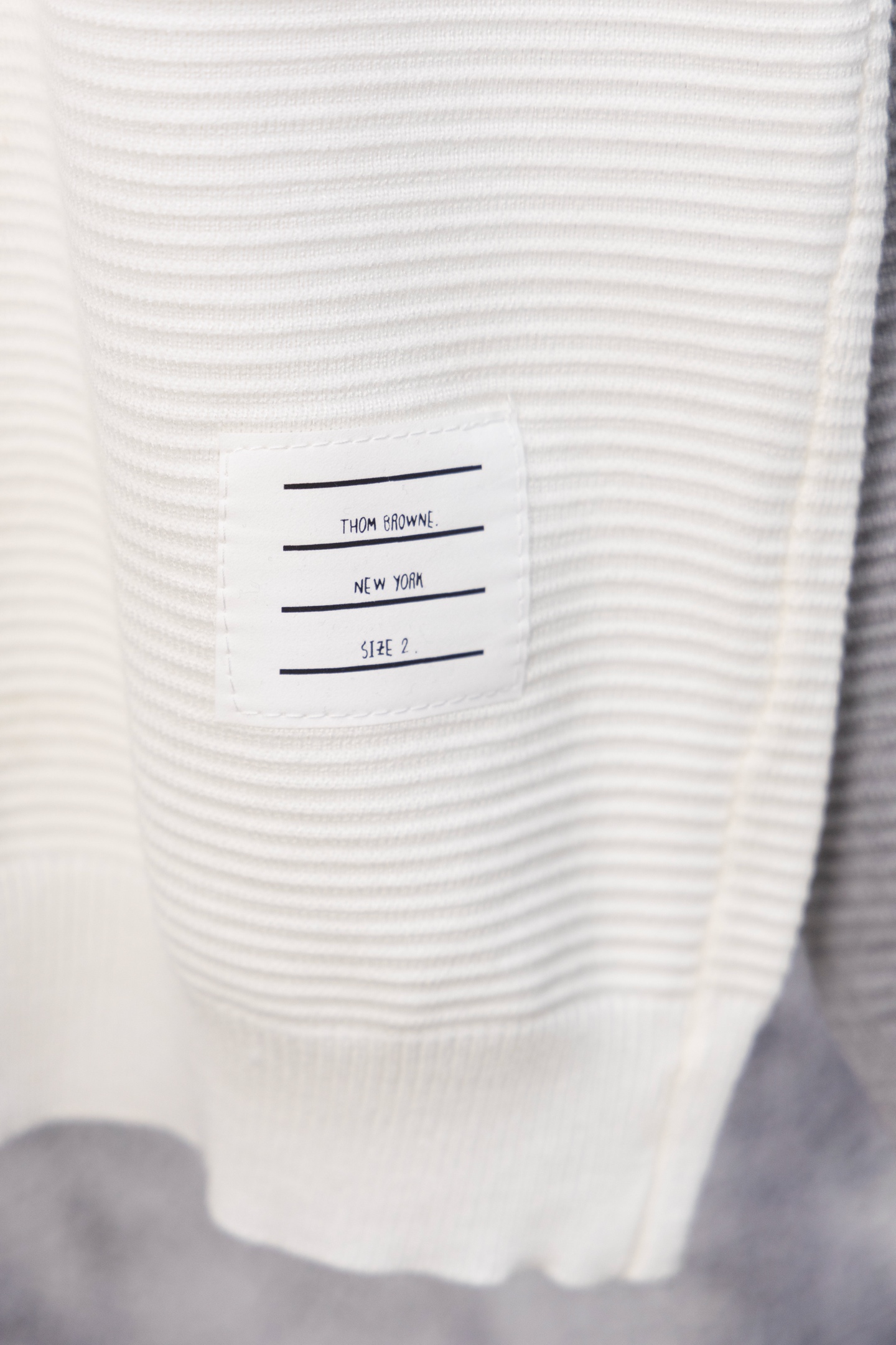 Ervaar luxe en comfort met deze Thom Browne trui. Zachte katoenmix, dubbellaags gebreid, perfect voor elke gelegenheid. Tijdloze stijl!