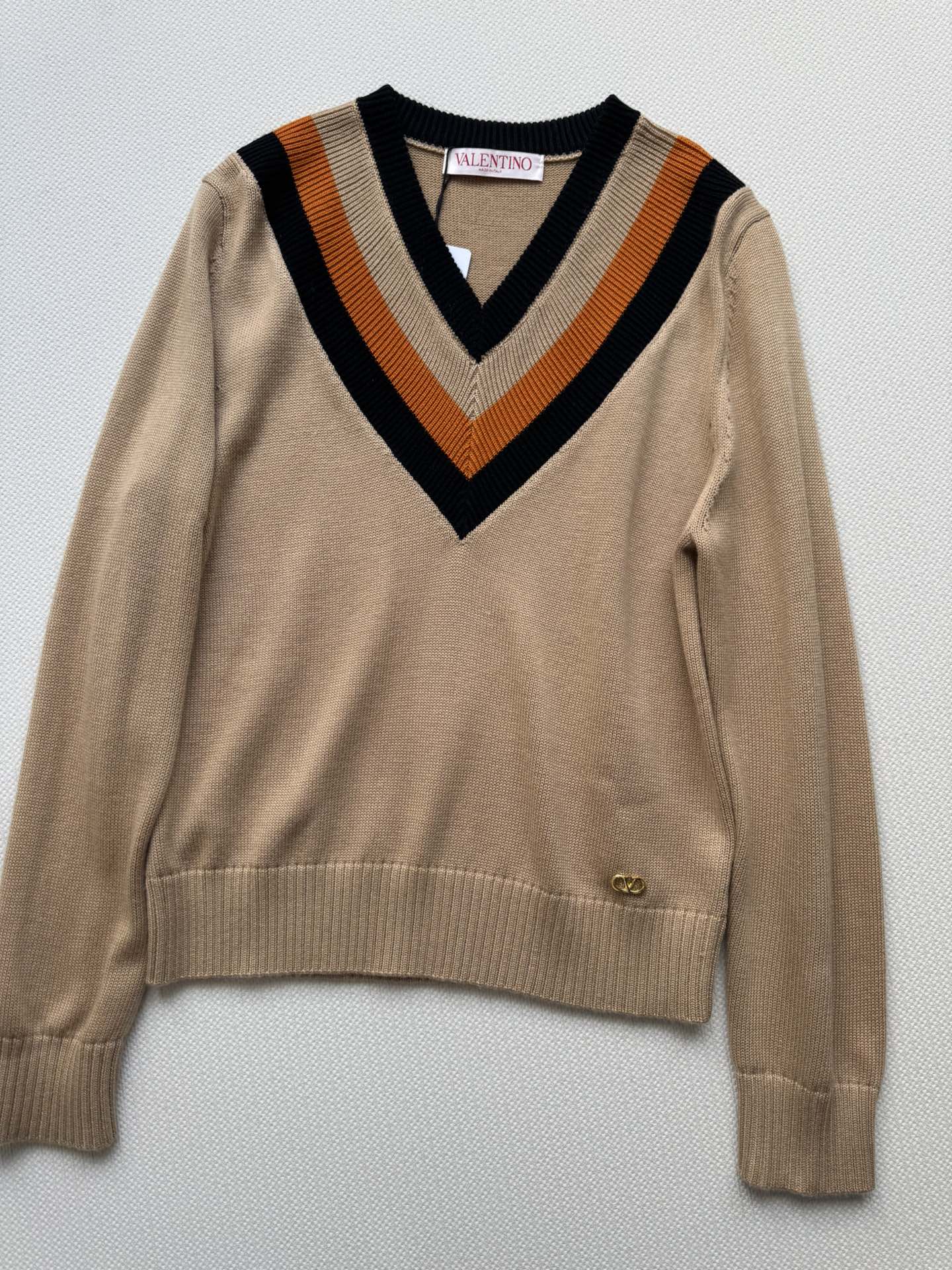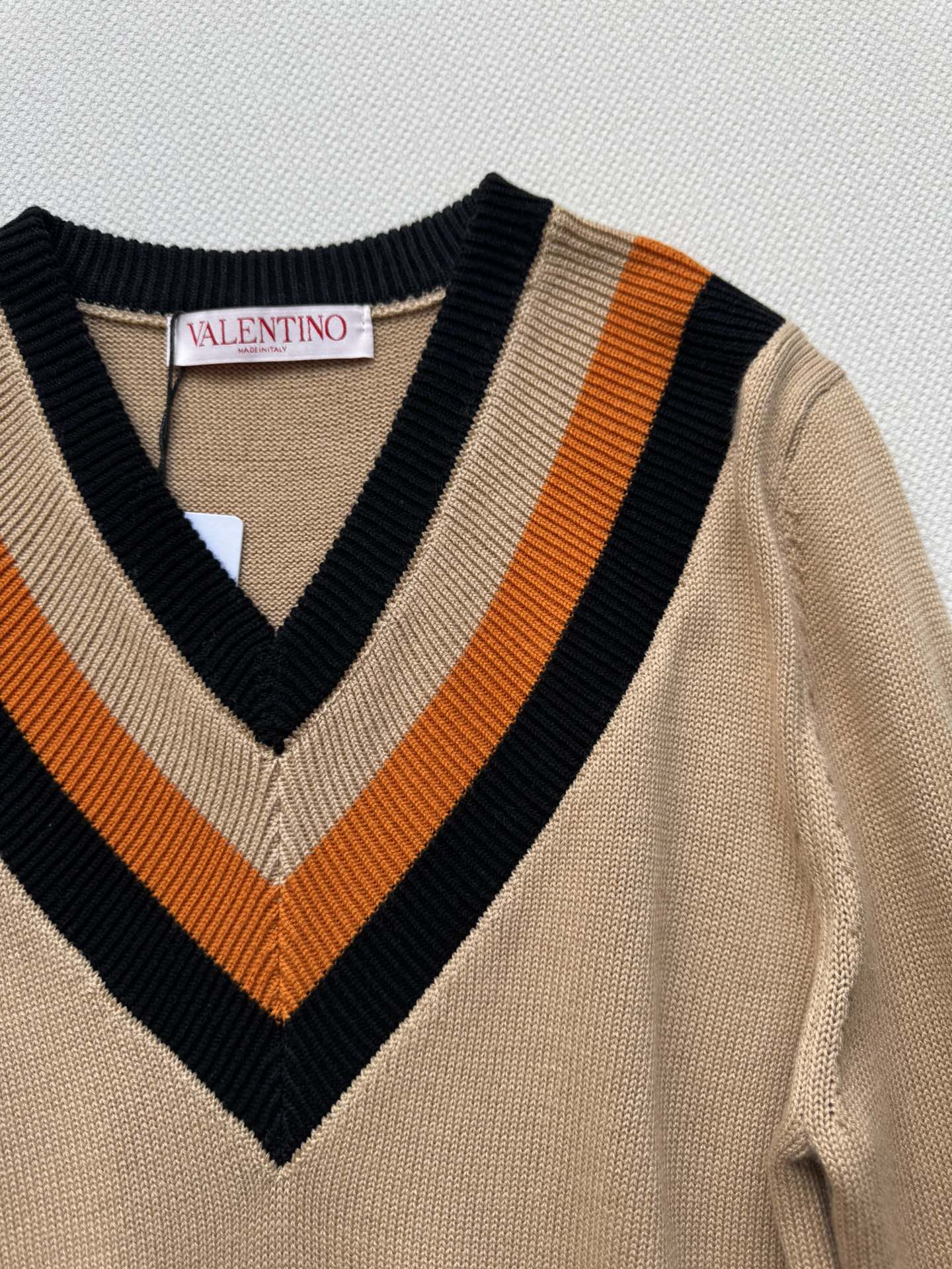 Tags: Comfortabele Gebreide Top, Dames Trui V-hals, Luxe Designer Trui, Stijlvolle Dameskleding, Valentino Gebreide Trui