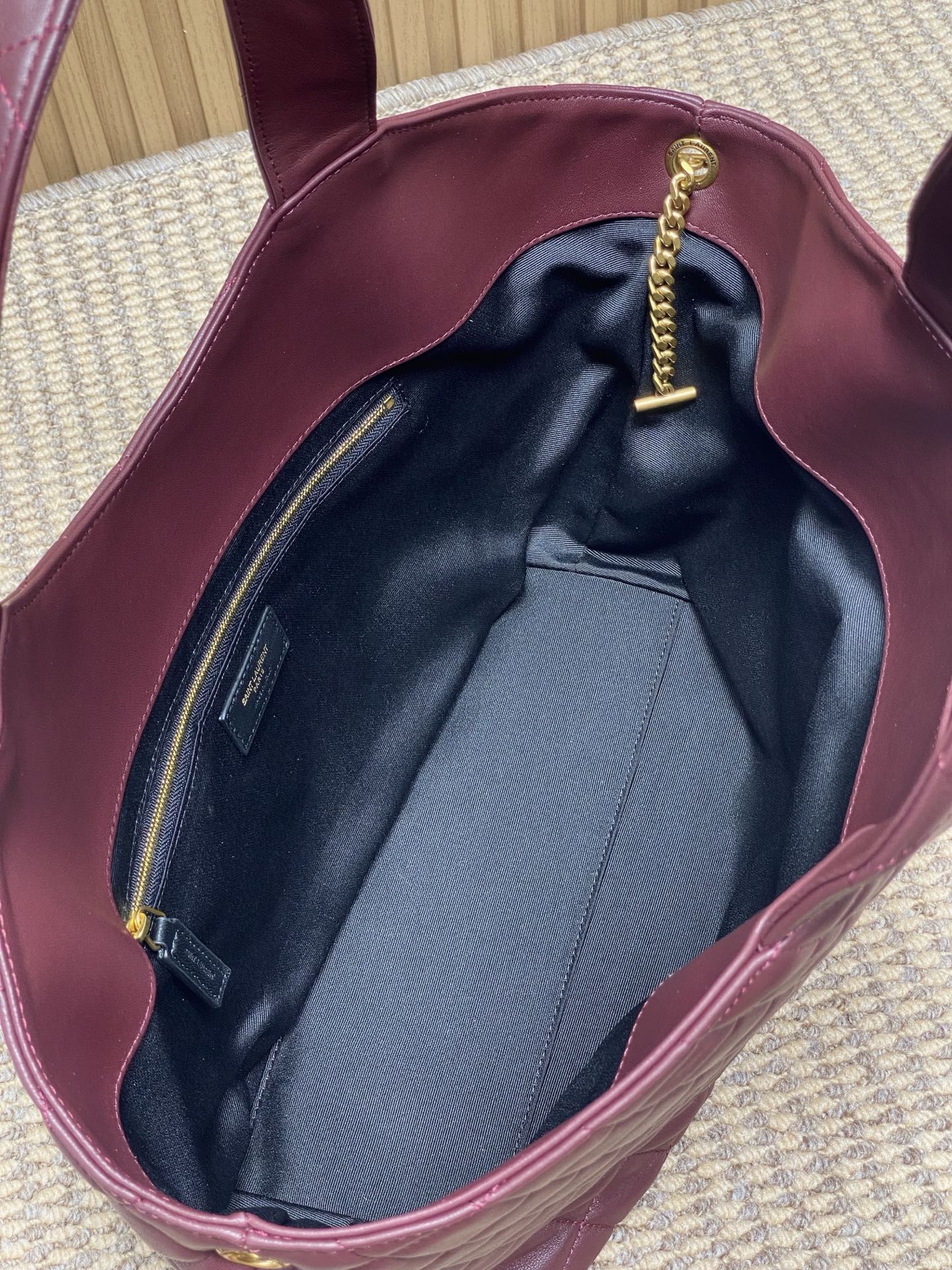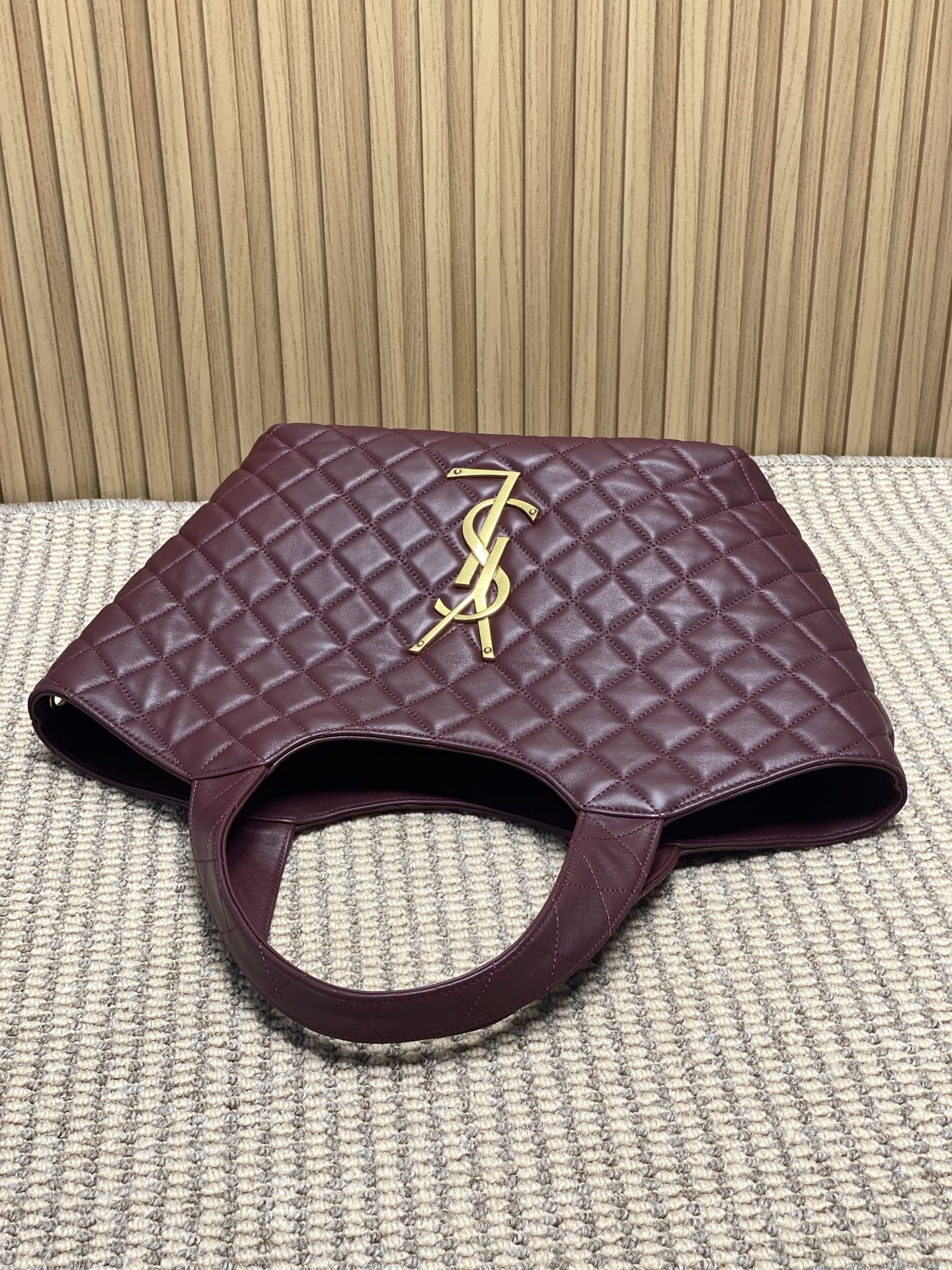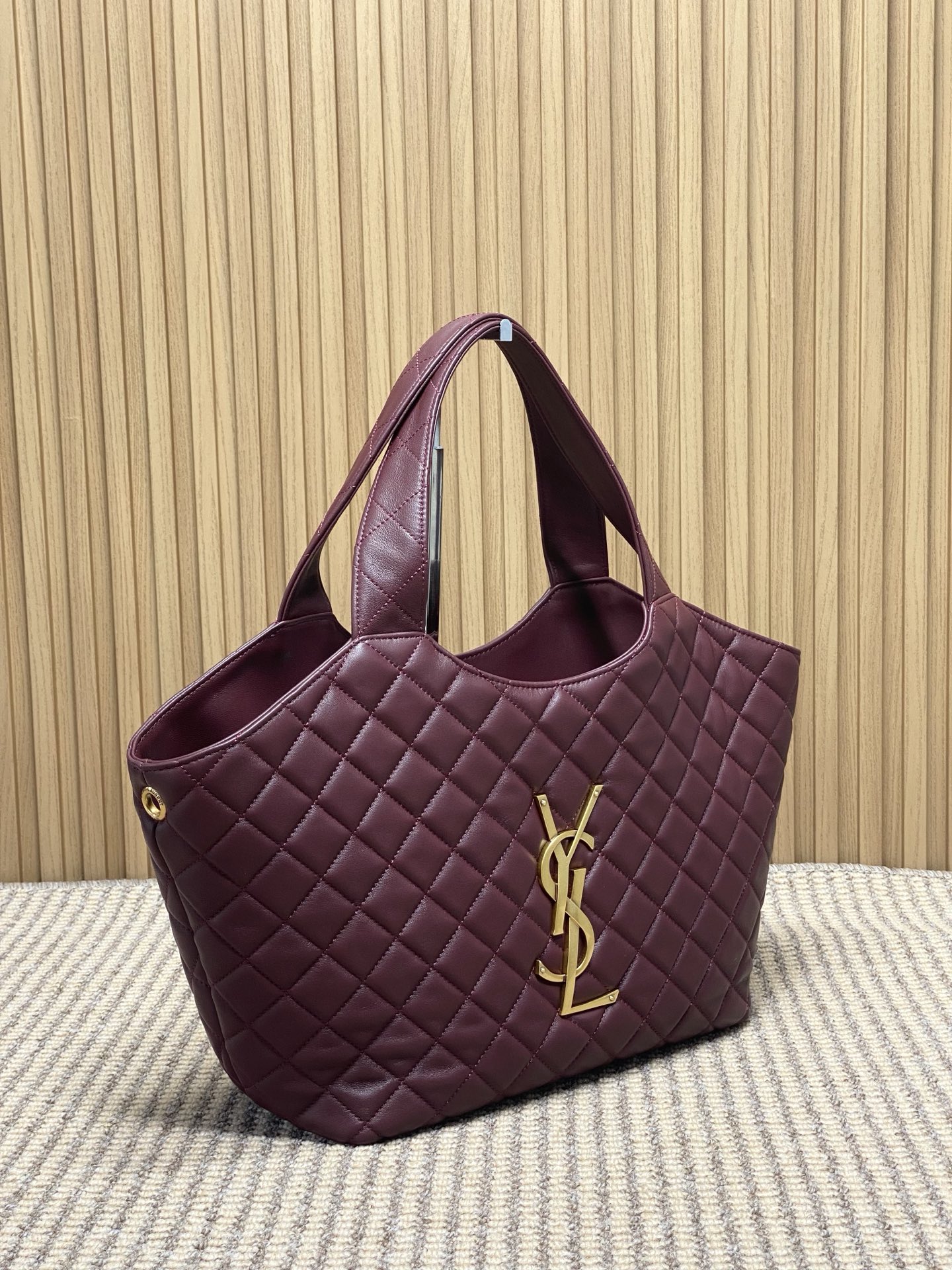 Tags: Bordo Leren Handtas, Designer Tote Bag, Gequilte Handtas, Luxe Dames Handtas, Ysl Icare Tote Small, Yves Saint Laurent Handtas