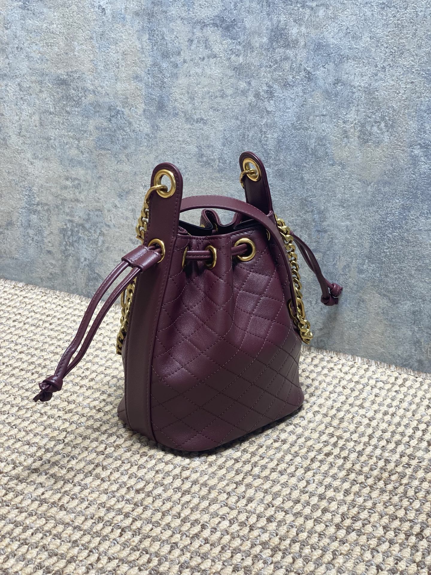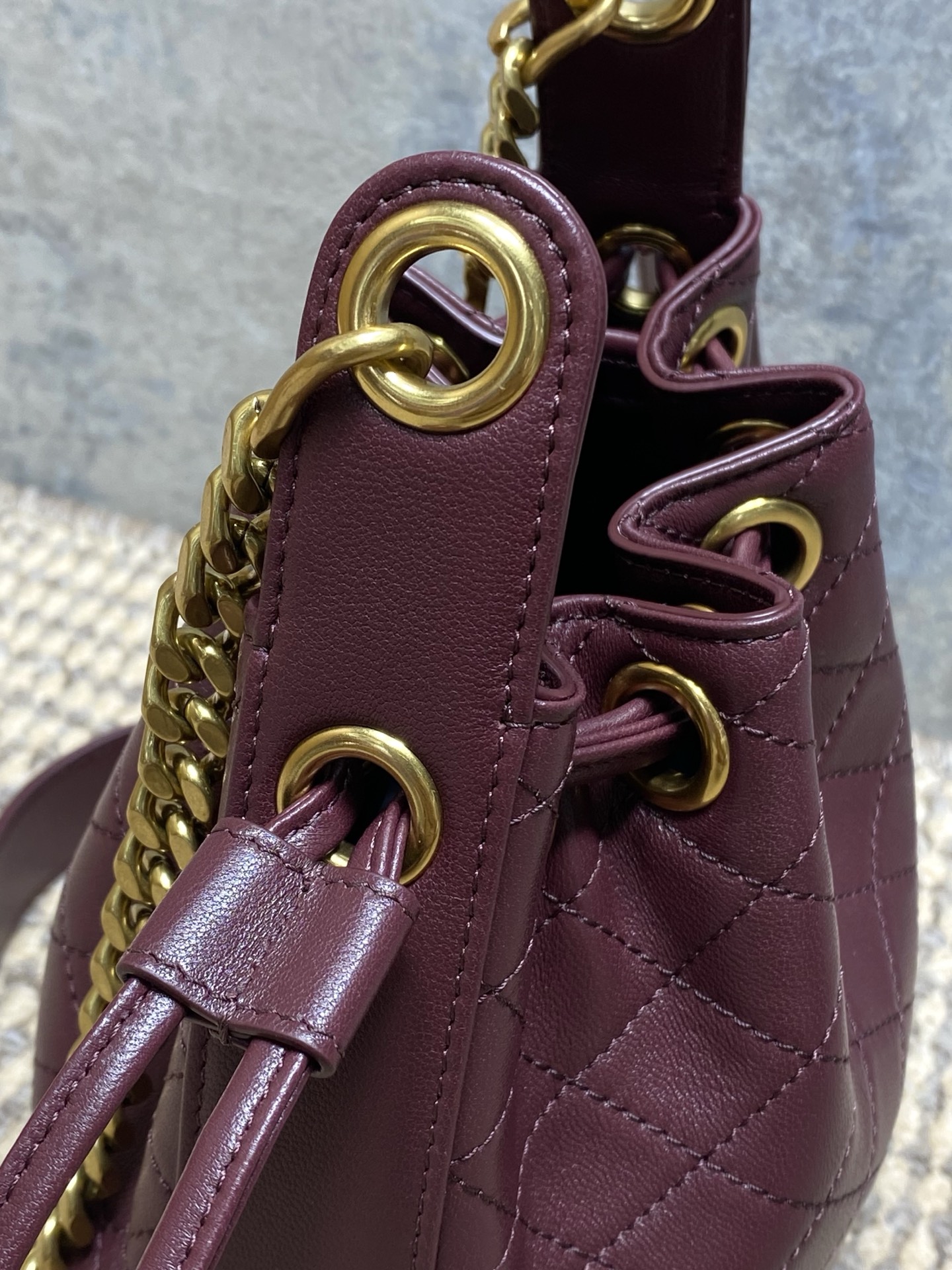 Tags: Dames Bucket Bag, Designer Handtas, Ketting Schoudertas, Le Cassandre Paars, Leren Handtas, Ysl Bucket Bag