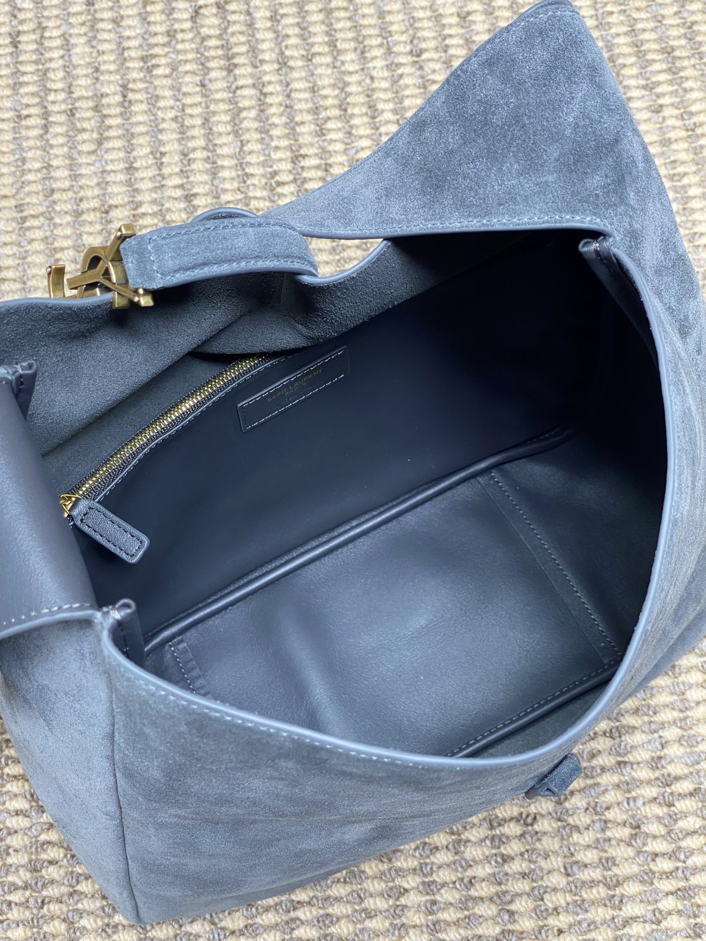 Tags: Grote Capaciteit Tas, Lichtgewicht Designer Tas, Modieuze Dames Tas, Stijlvolle All-Season Tas, Suède Schoudertas Grijs, Yves Saint Laurent Tas